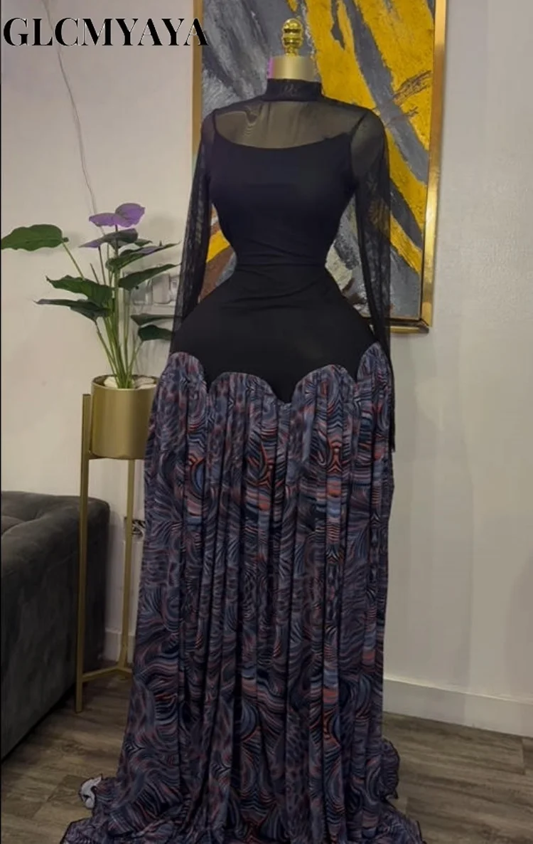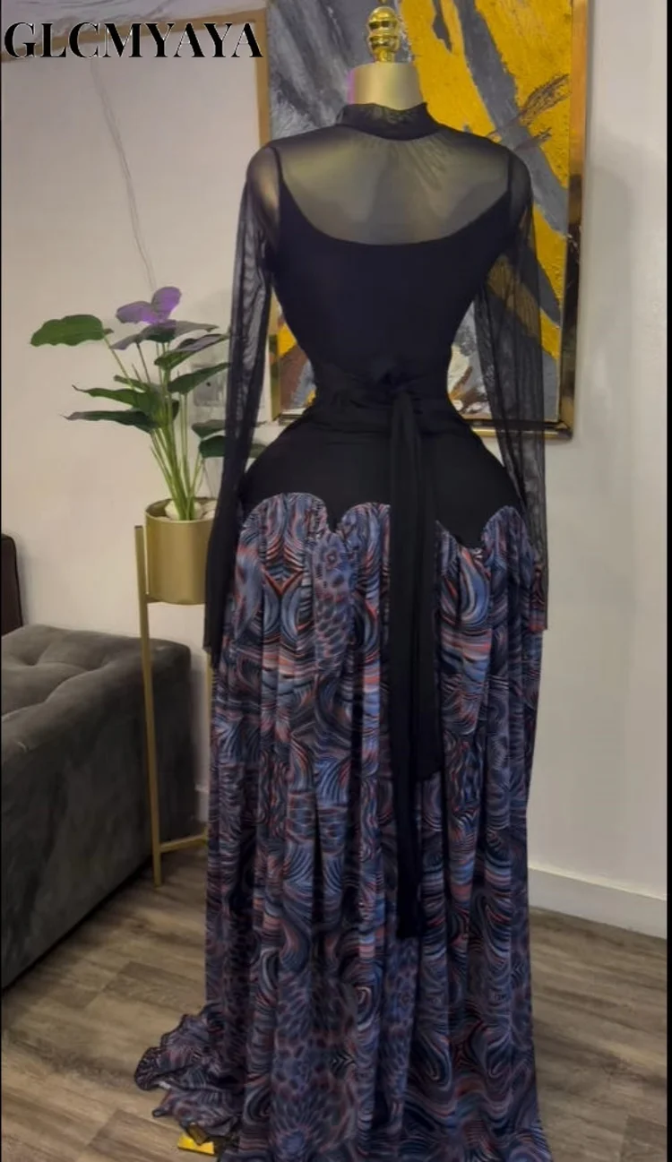 CM.YAYA Women Tie Dye Printed Patchwork A-line with Sashes Fit and Flare A-line Maxi Long Dress Education Vacation Prom Dresses