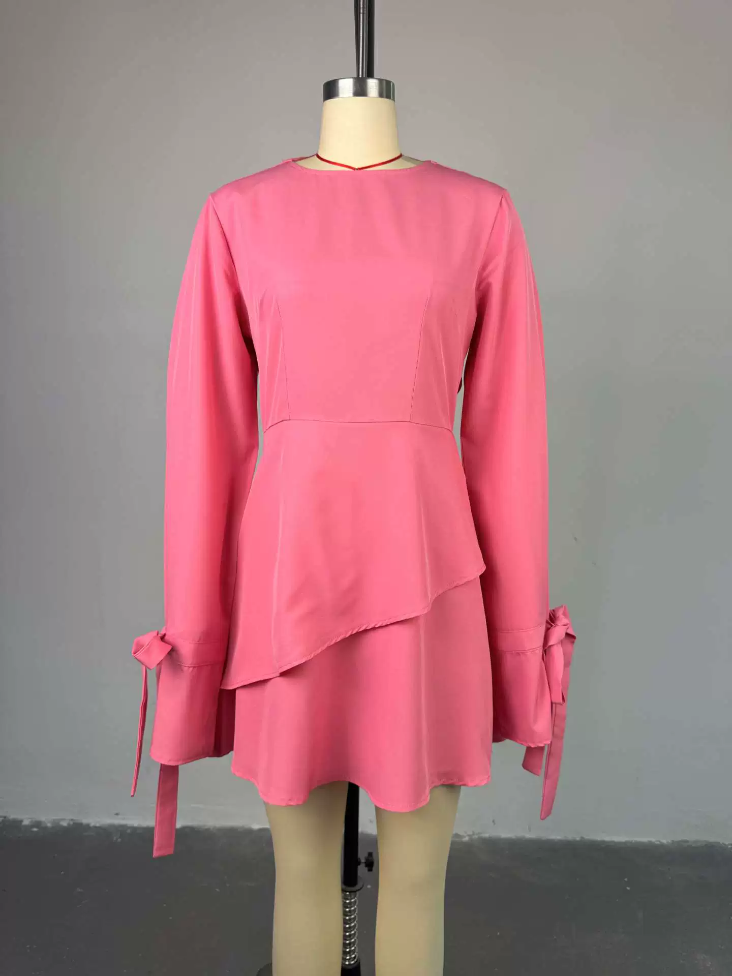 CM.YAYA Women Tie Up Bow Long Sleeve O-neck Mini Dress 2025 Birthday Holiday Sexy Club Party Evening High Street A-Line Dresses