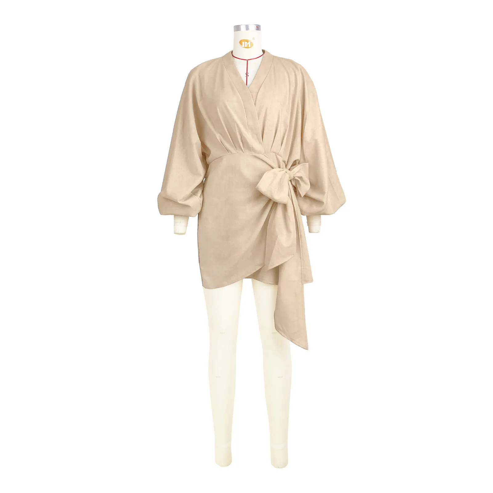 CM.YAYA Women V-Neck Full Sleeve Tie Up Flower Bodycon Mini Dress 2024 Summer INS Irregular Club Evening Sexy Party Dresses