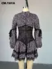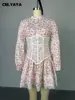 CM.YAYA Women V-neck Long Sleeve Lace Floral Print Mini Dress Holiday Sweet Sexy Birthday Beach Night Party Vestidos Dresses