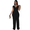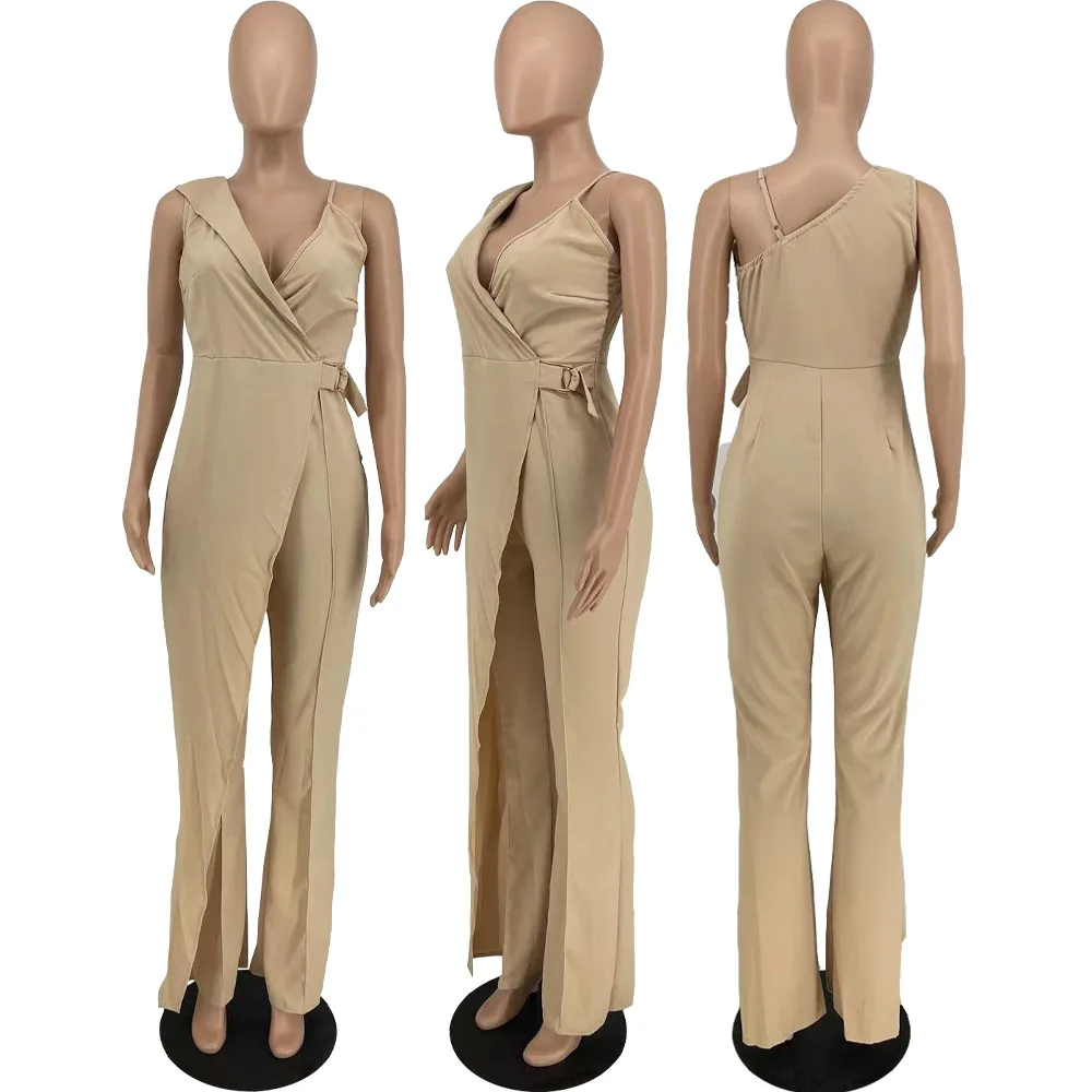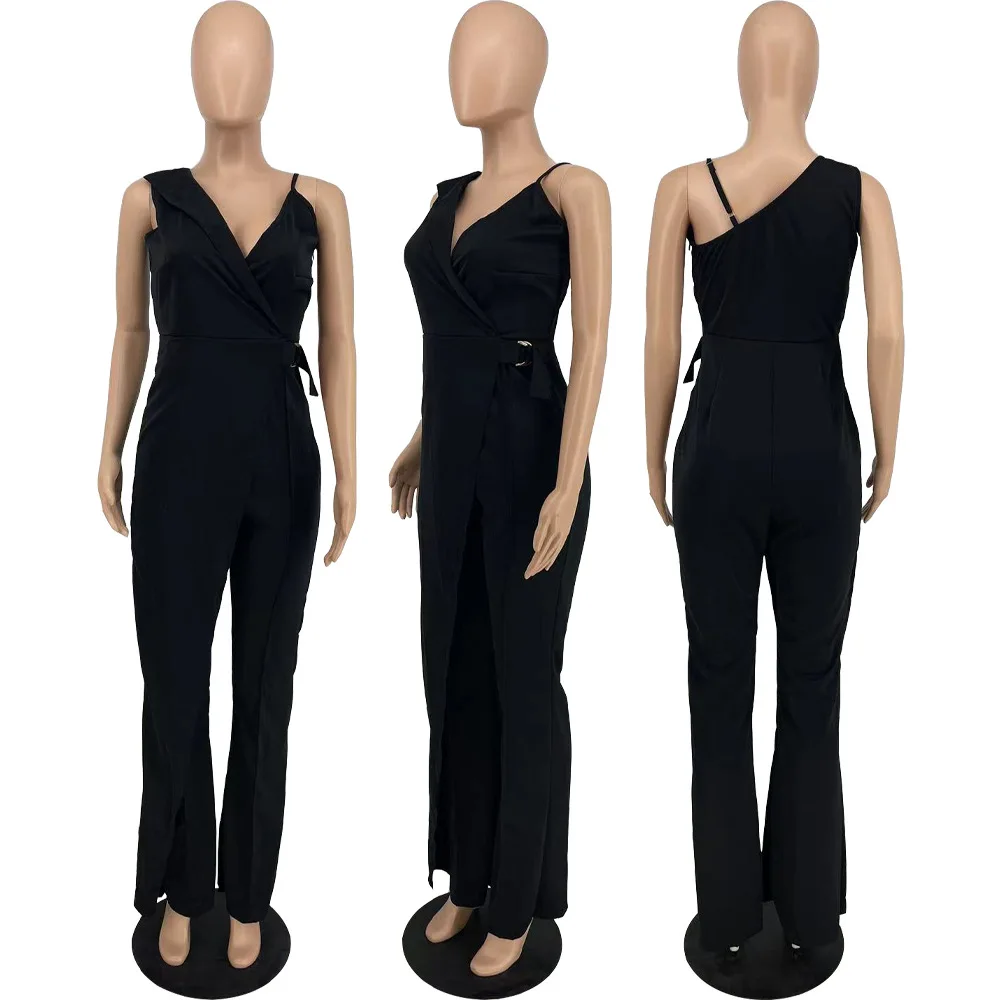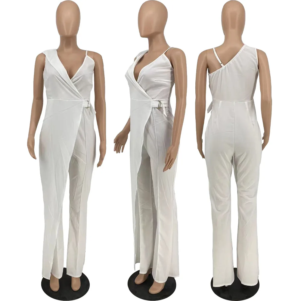 CM.YAYA Women V-Neck Patch Designs Sleeveless Wide Leg Jumpsuit 2022 One Piece Overall Office Lady Straght Jumpsuits Playsuit