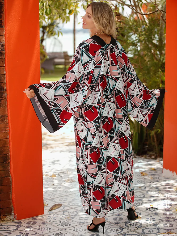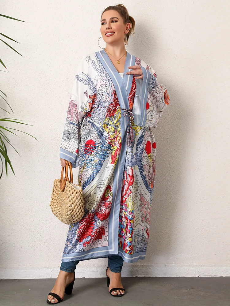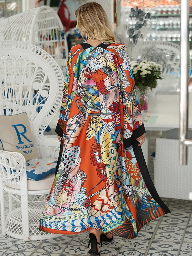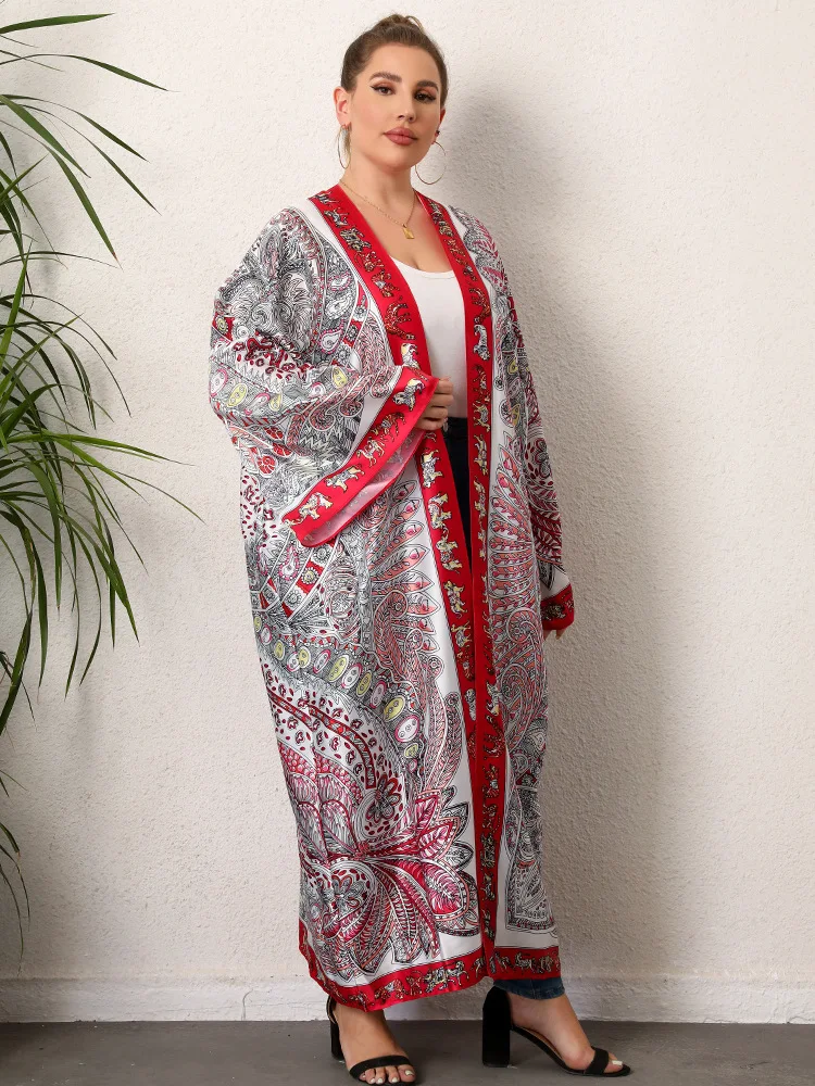 CM.YAYA Women Vintage Paisley Printed Open Stitch Maxi Long Straight Cover-ups Dress for 2023 Summer Beach Robe Dresses Vestidos