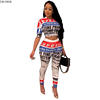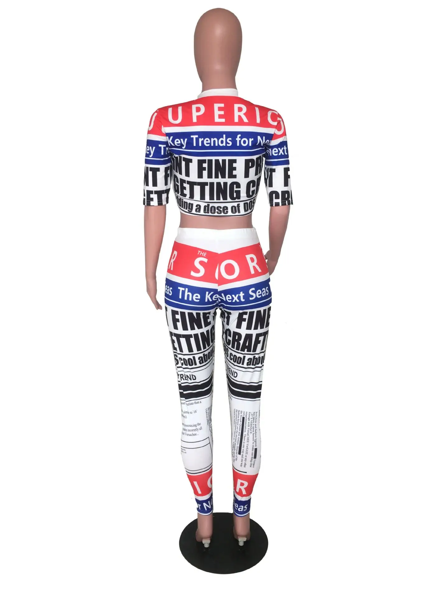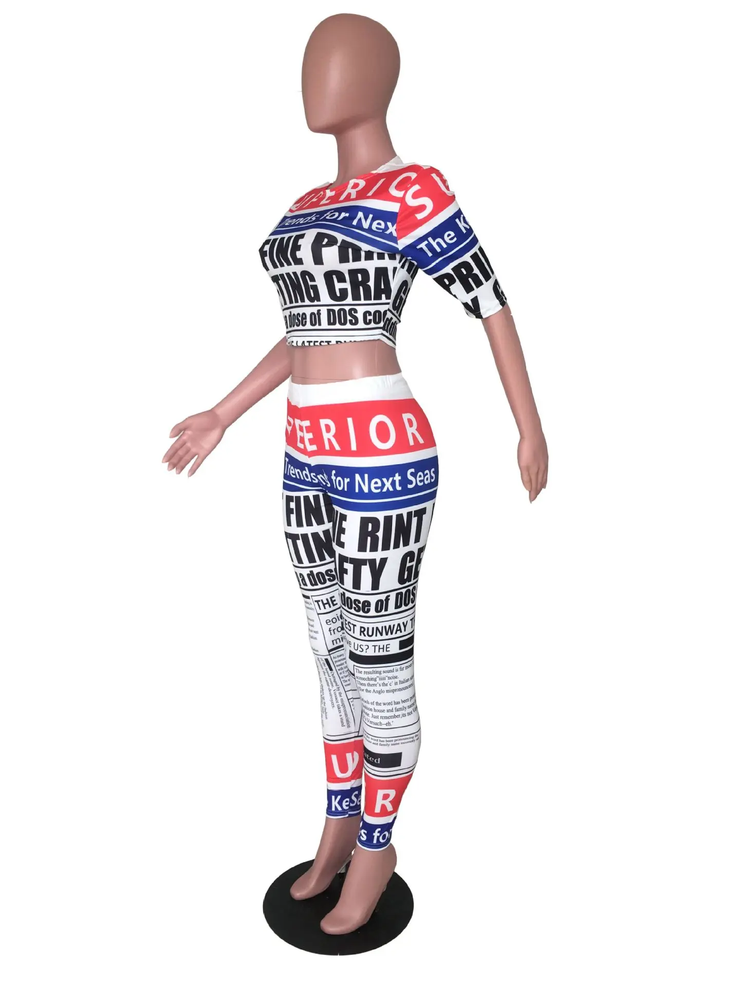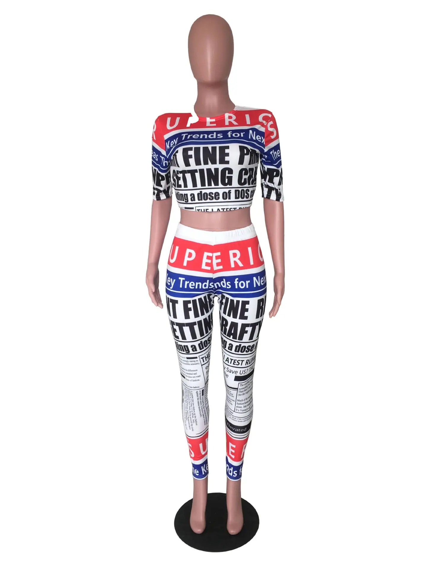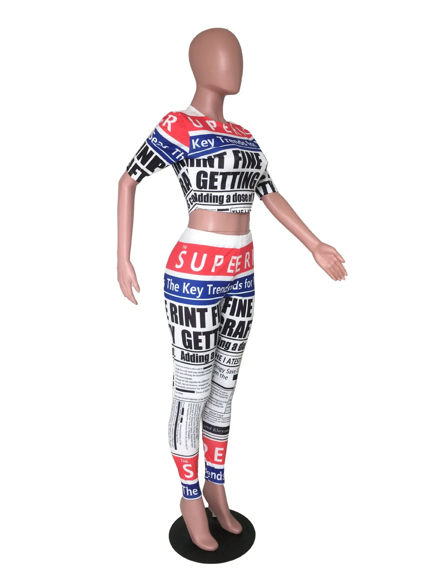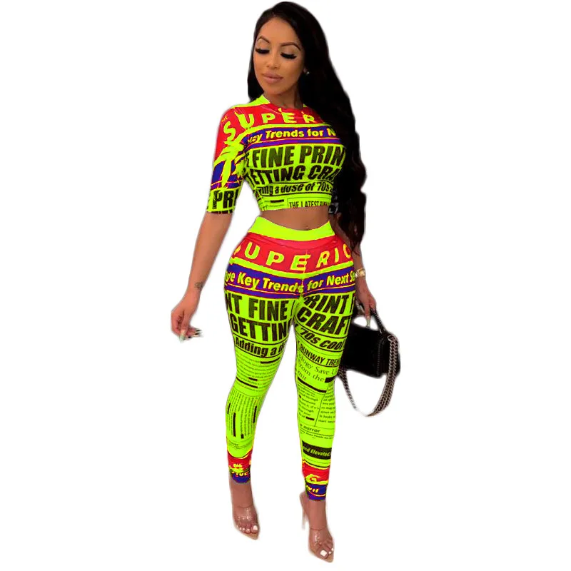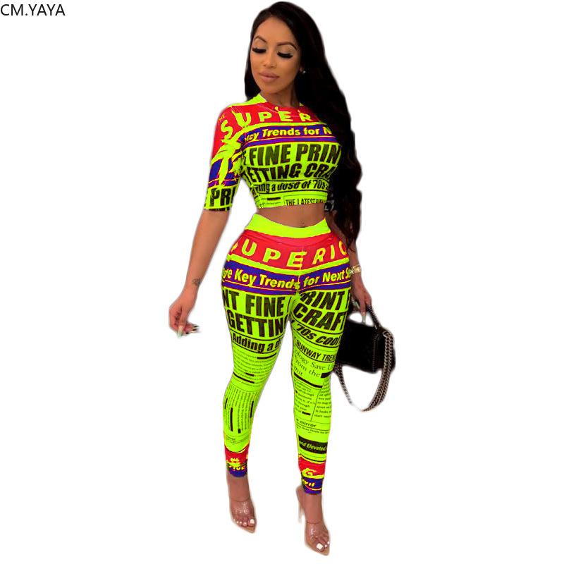 CMYAYA 2019 Women Summer Letter Newspaper Print Short Sleeve O-neck Tee Pencil Pants Suit Two Piece Set Sporty Tracksuit Outfit
