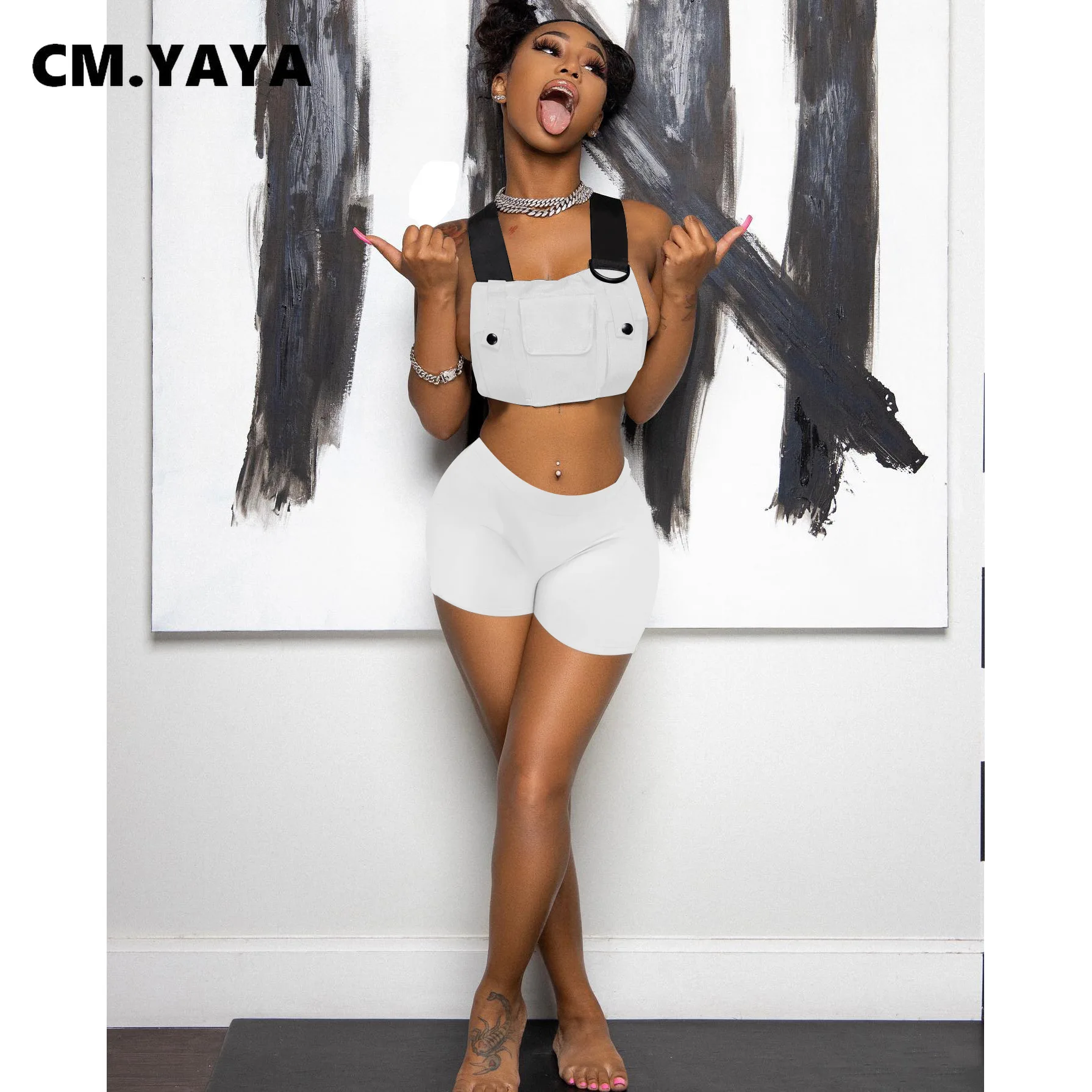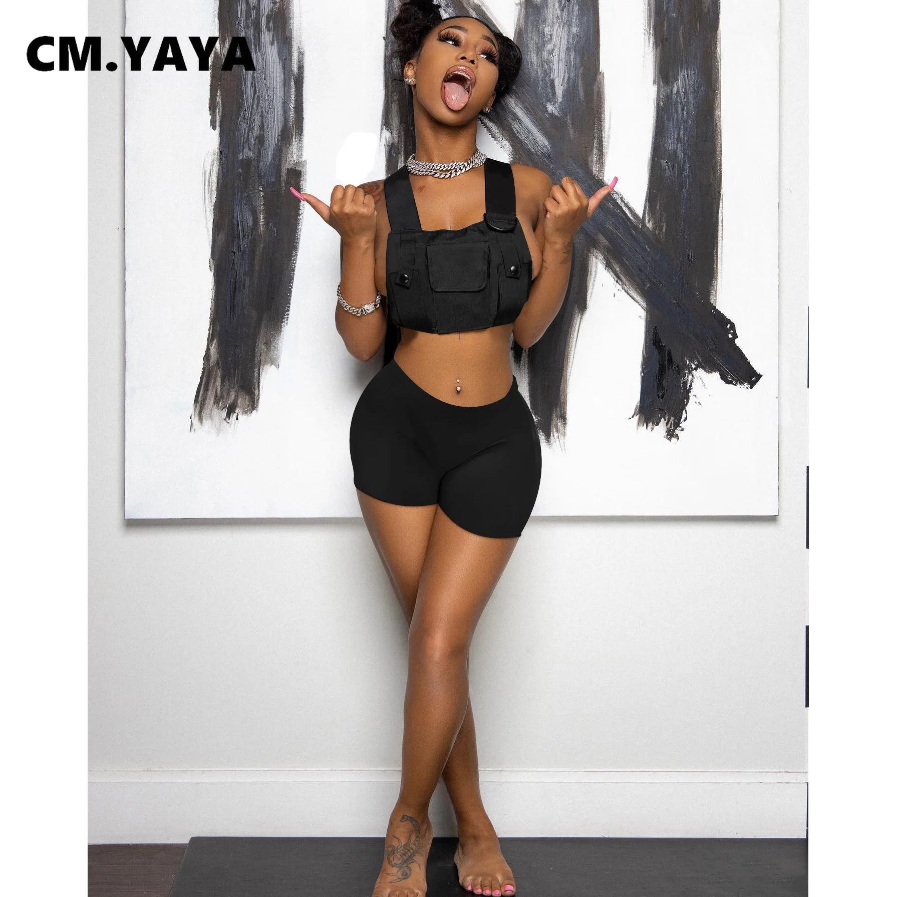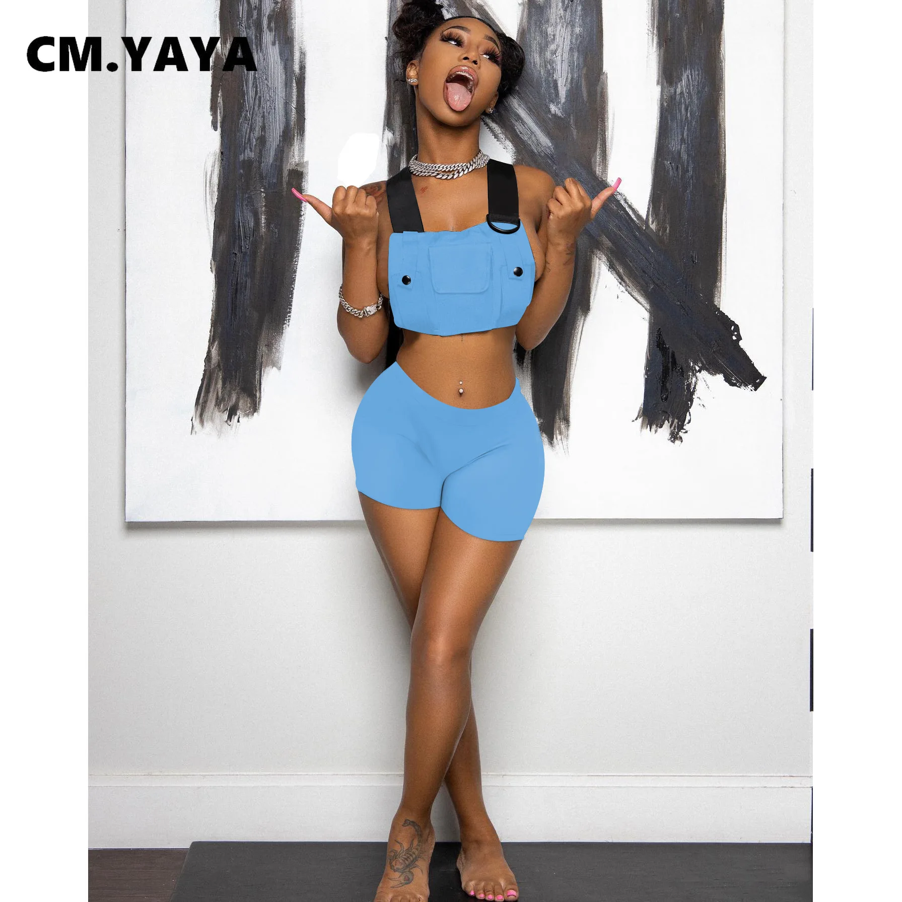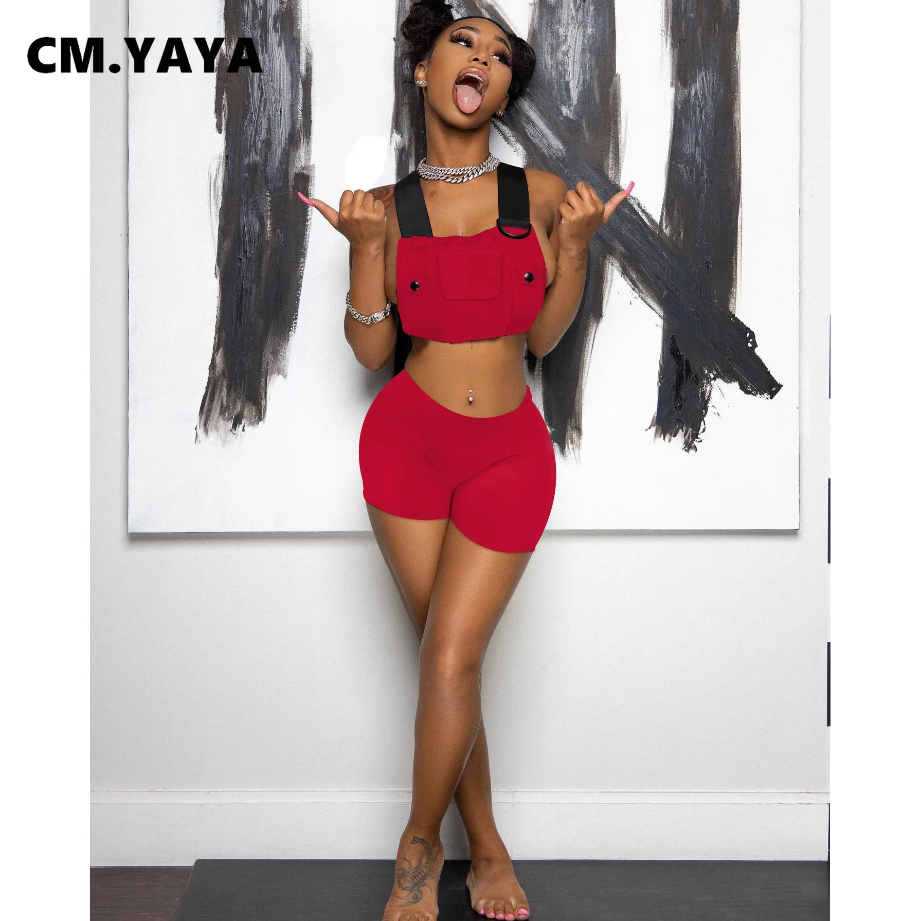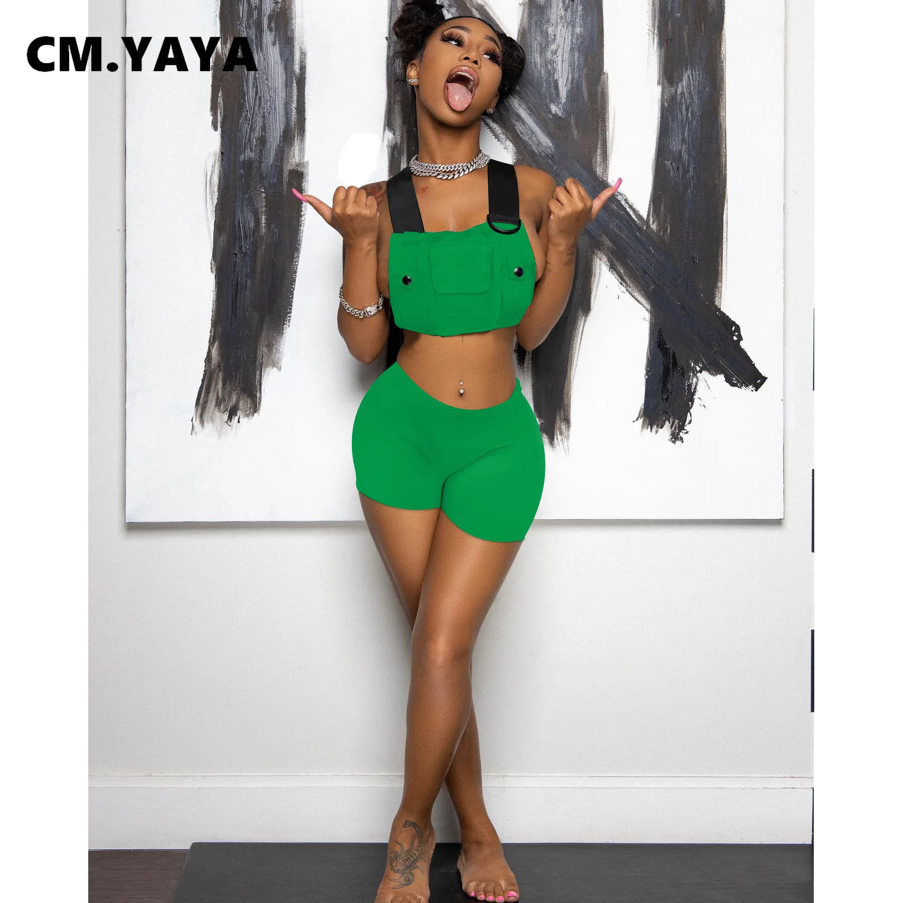 CMYAYA Elegant Active Pink Women Shorts Set 2022 Summer Tank Top Matching Two 2piece Set Outfits Workout Tracksuit Sweatsuit