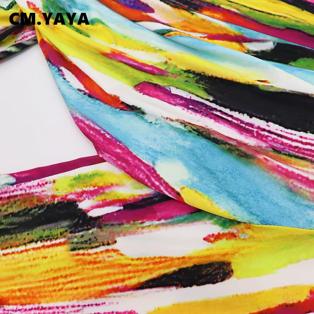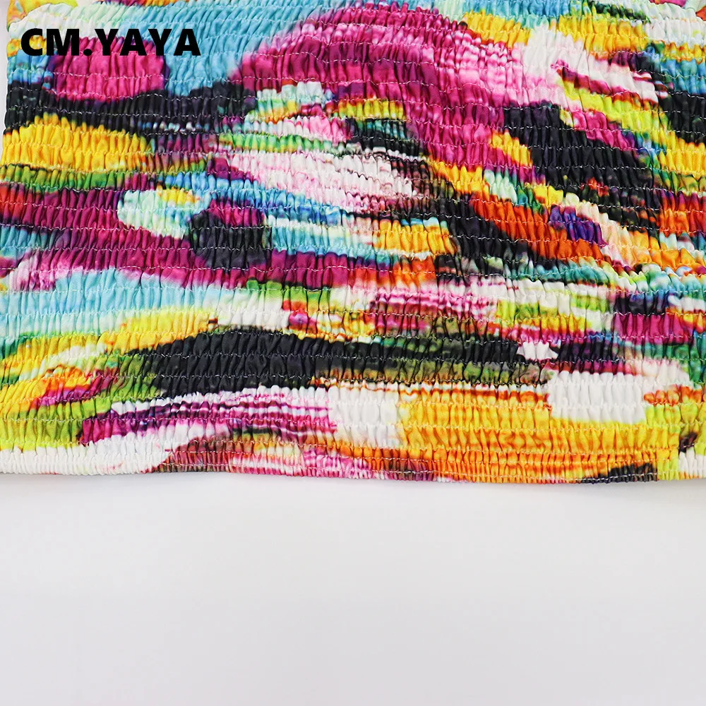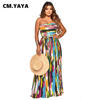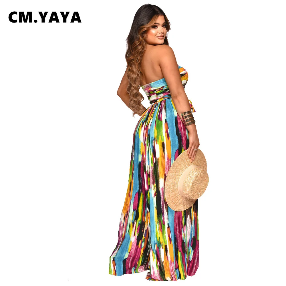 CMYAYA Elegant Tie Dye Women Oversized One Piece Overall Set Strapless Backless High Waist Straight Wide Leg Jumpsuit 2022