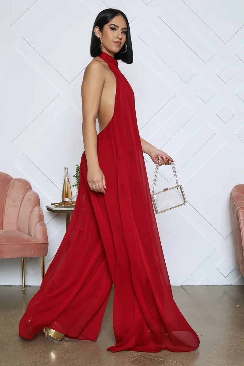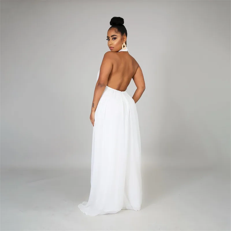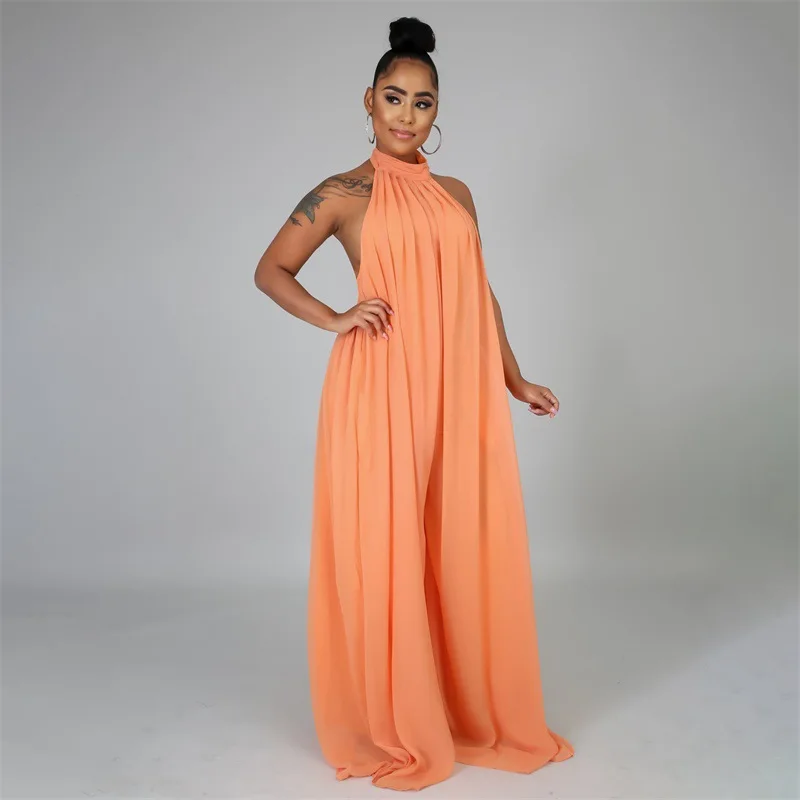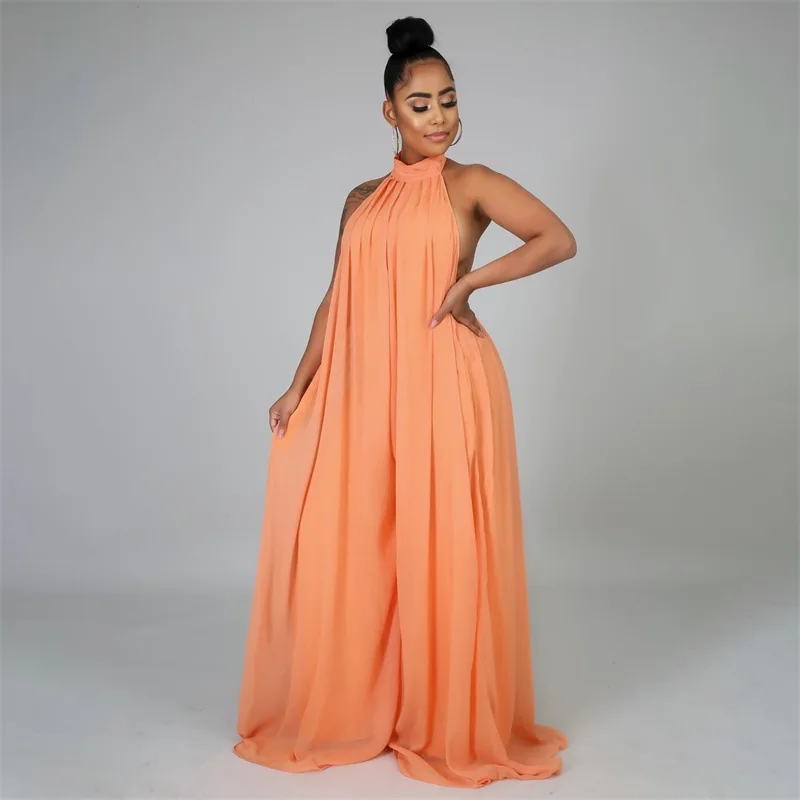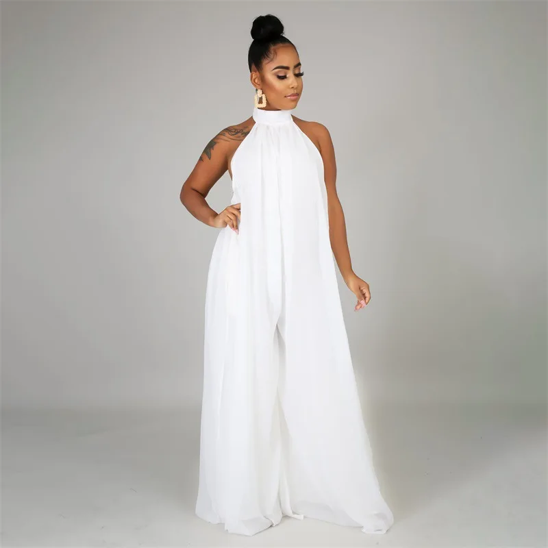 CMYAYA Elegant Women Halter Neck Sleeveless Loose Wide Leg Jumpsuit 2022 Street INS One Piece Set Overal Long Sleeve Playsuit
