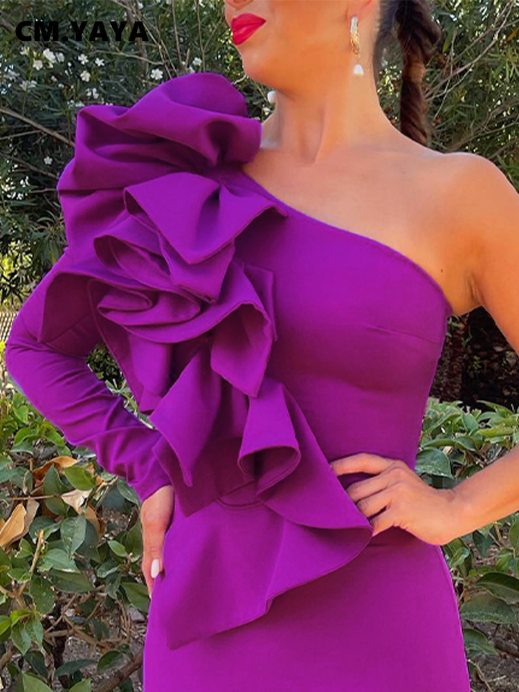 CMYAYA Elegant Women Ruffles Splicing One Long Sleeve Zipper Back Dress 2022 Summer Sexy Party Prom Club Bodycon Midi Dresses