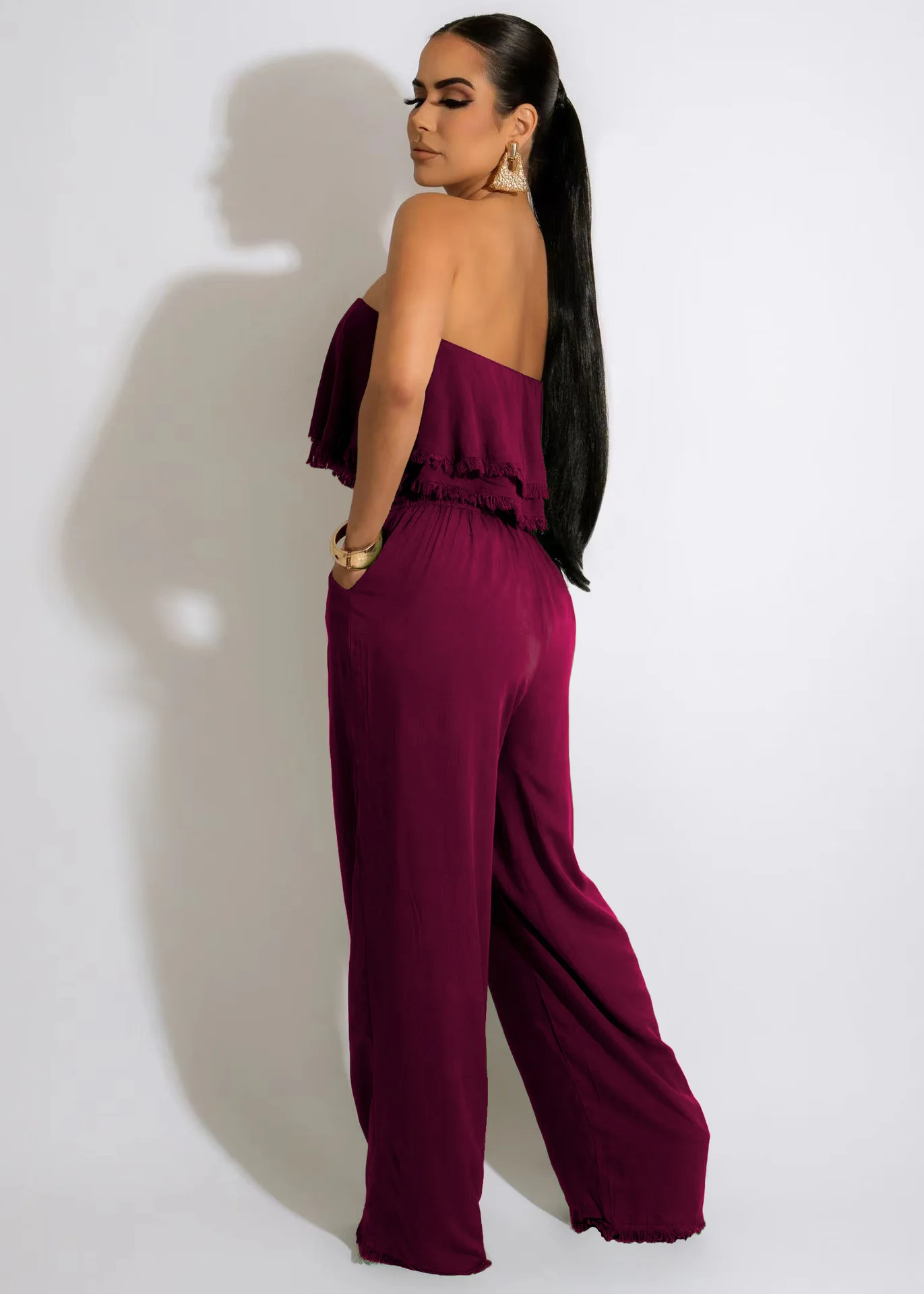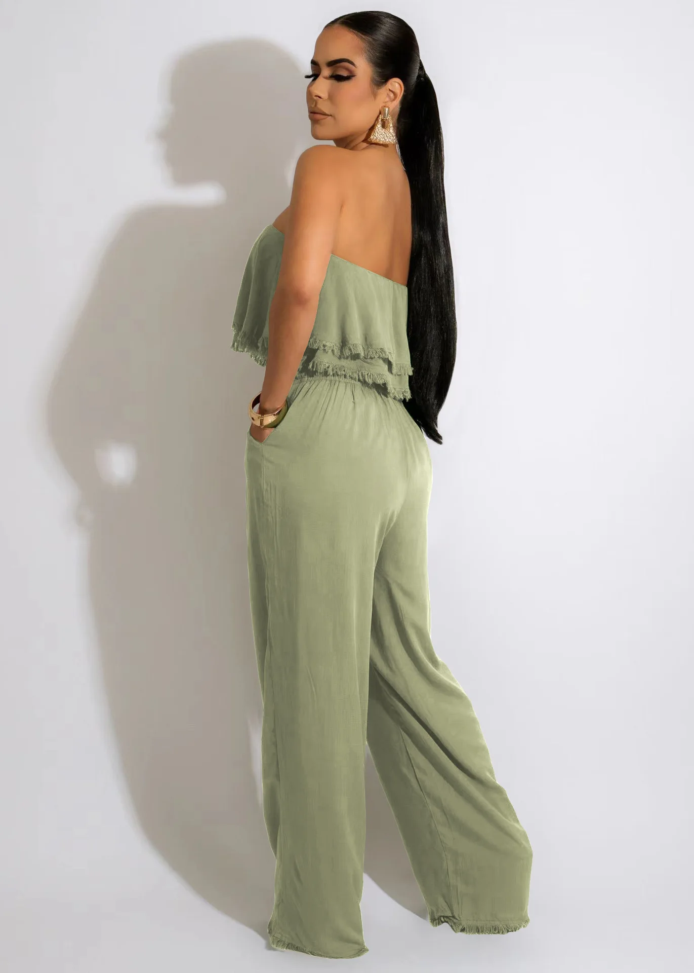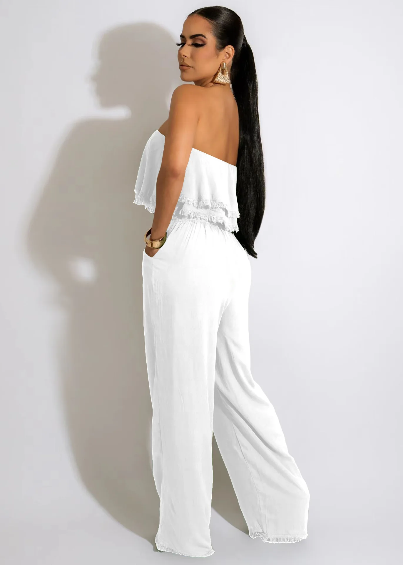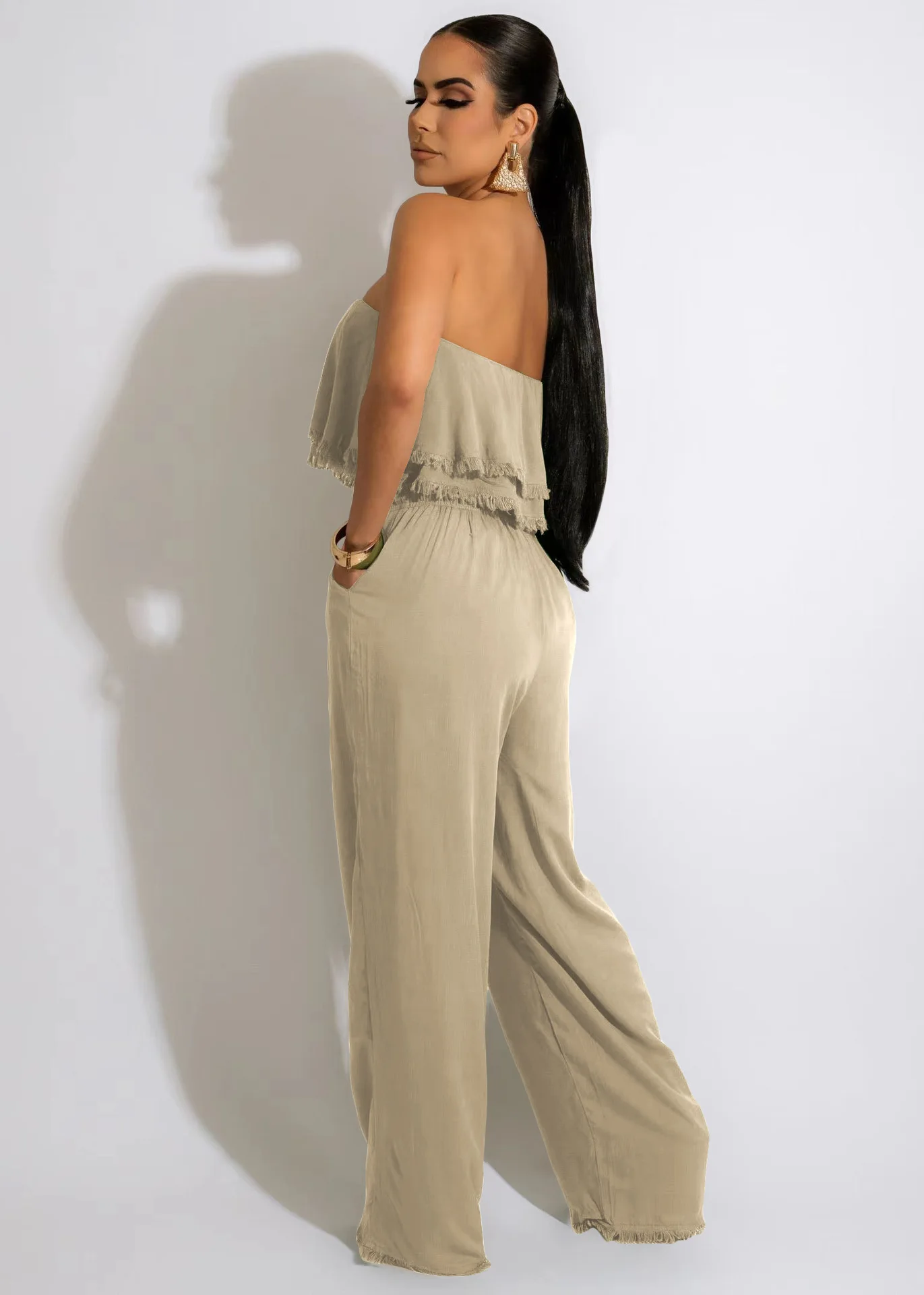 CMYAYA Elegant Women Ruffles Strapless High Waist Tassel Hem Straight Loose Jumpsuit 2022 Summer Boho Holiday Overall Playsuit