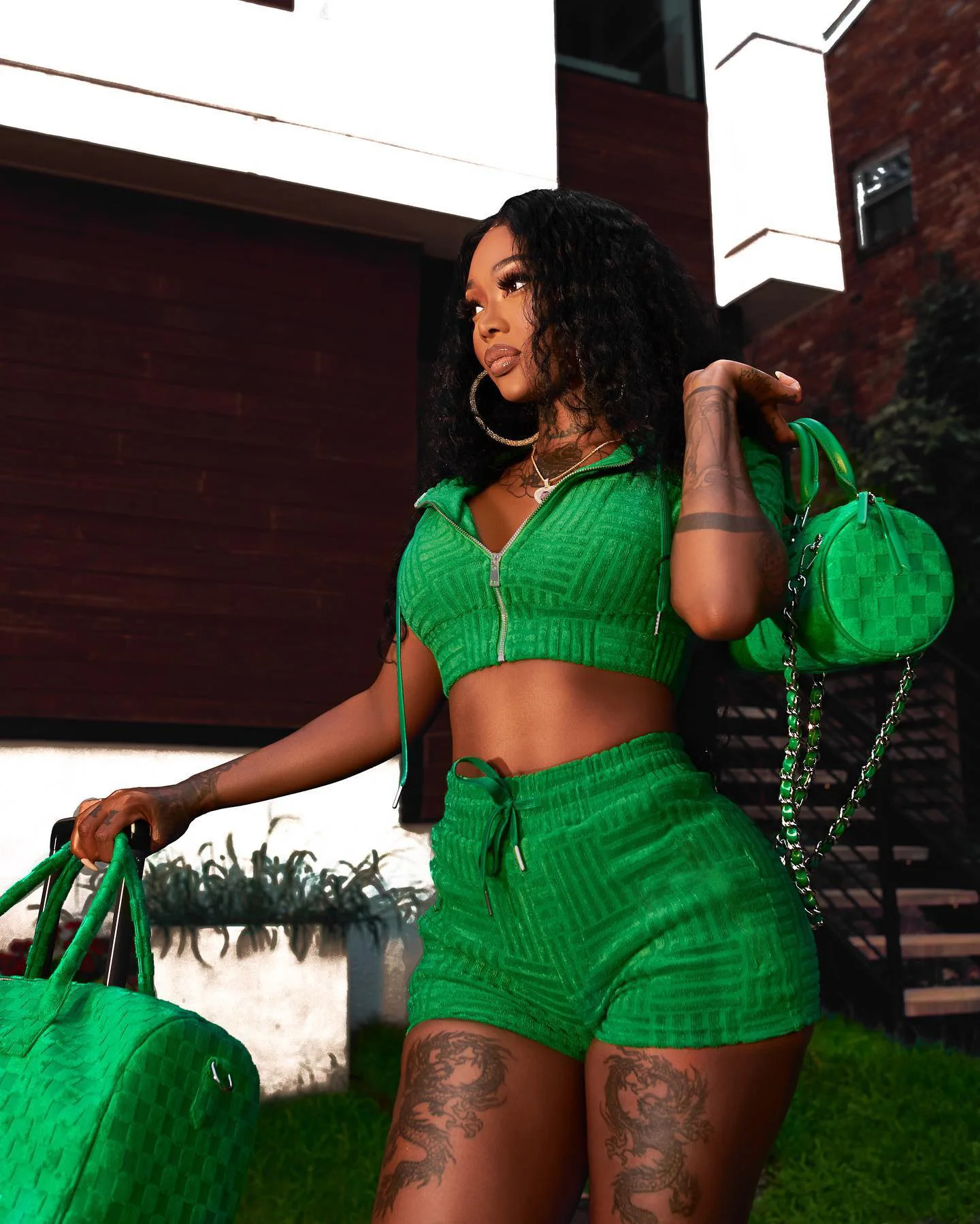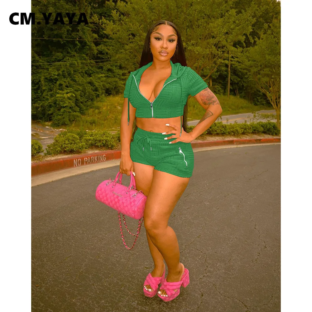 CMYAYA Plaid Pattern Women Shorts Suit and Hooded Track Tops Street Active Sport Tracksuit Two 2 Piece Set 2022 Sweatsuit Outfit