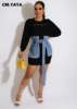 CMYAYA Women Long Sleeve Denim Patchwork Pencil Jeans Dress 2022 Fall Street Casual T-shirt Style Mini Dresses