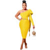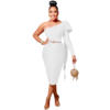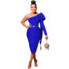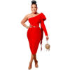 CMYAYA Women One Shoulder Skew Neck Bow Splicing One Long Sleeve Bodycon Midi Dress 2022 Sexy Party Prom Evenging Summer Dresses