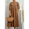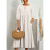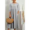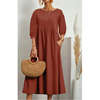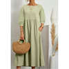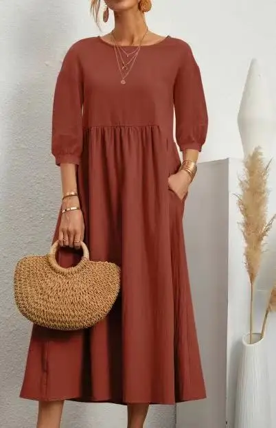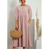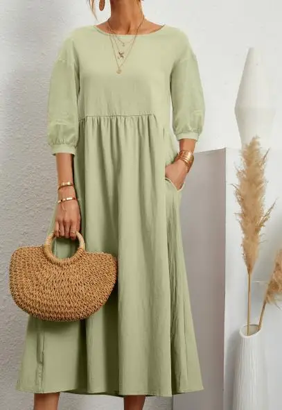 Cotton and Linen Dresses for Woman 2022 Summer New Fashion Lantern Sleeve Loose Casual Lady's Dress with Pockets Mid Length Pink