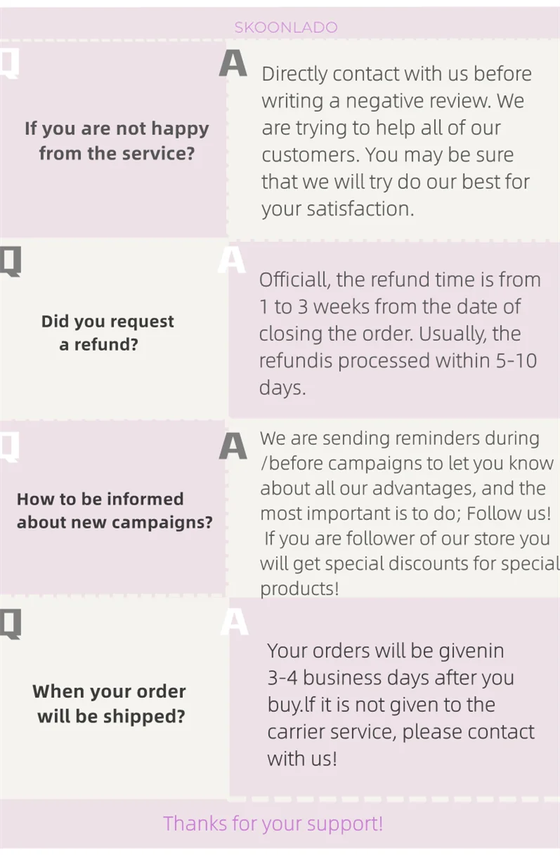• If you did not receive the product within the guaranteed time( 45 days not including 2-5 day processing) you can request a refund or a reshipment.