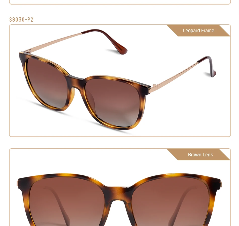 Let your style resonate on all spectrums with these leopard Striped polarized sunglasses. This urban frame features a trapezoid-shaped frame front in a semi-transparent Brown-banded acetate finish with a keyhole nose bridge. The Gold metal temples are tapered and end in matching acetate for a gratifying look suitable for both men and women.