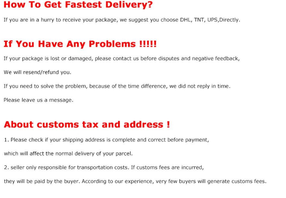 • If you did not receive the product within the guaranteed time( 45 days not including 2-5 day processing) you can request a refund or a reshipment.
