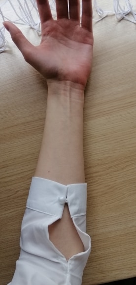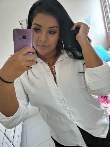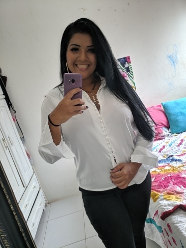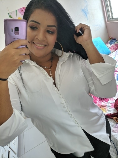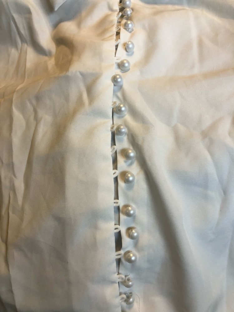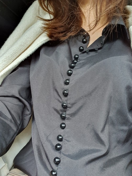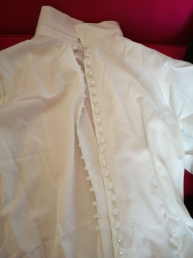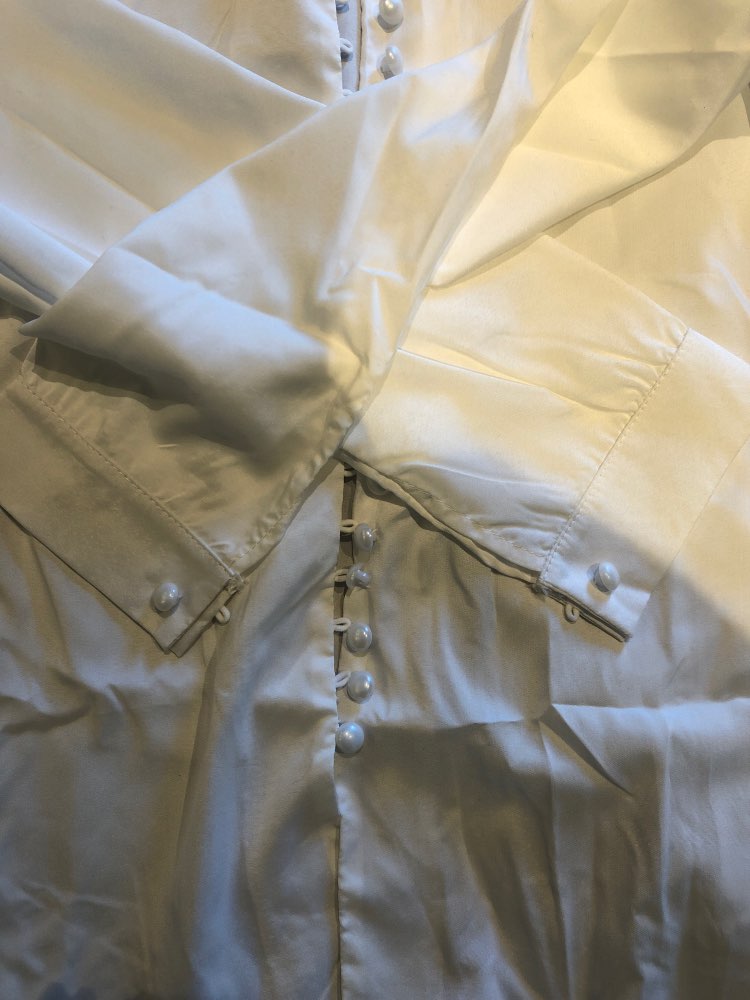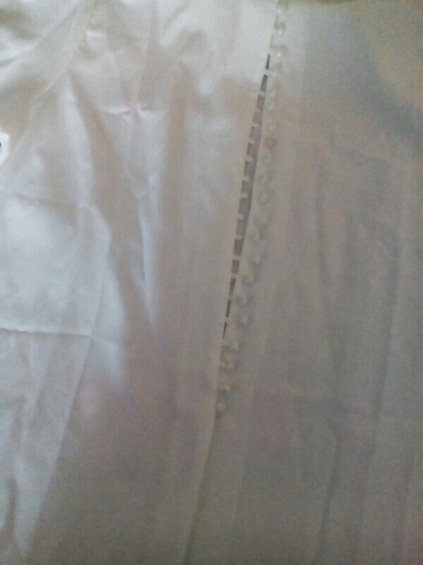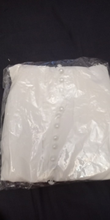 It's beautiful, the fabric is fresh as summer and transparent a little bit. The size is as shown in the measurements. The buttons thing is a mess, it's a lot of jajajaja but that gives the shirt a nice detail.