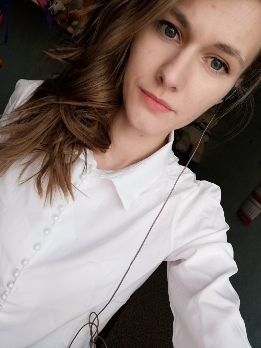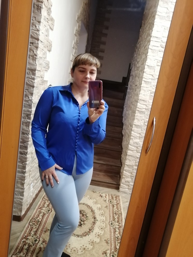 HHL on 48-50 size. That's great. At OHS 104 cm. Very and very good blouse. I'm so crazy about it.