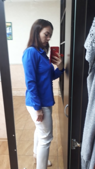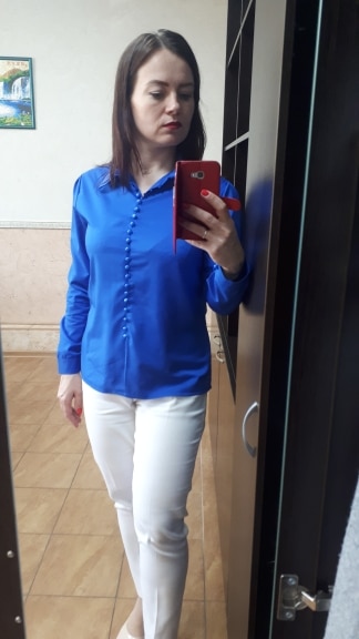 According to numerous reviews on og-96 ordered R. xl. (on our Russian 48) blouse approached me. Delivery just over a month. Buttons are poorly processed, submissive, which is noticeably very. Another my remark is the shoulders as lanterns, which makes them more. The color is blue, not pale. I did not communicate with the store.