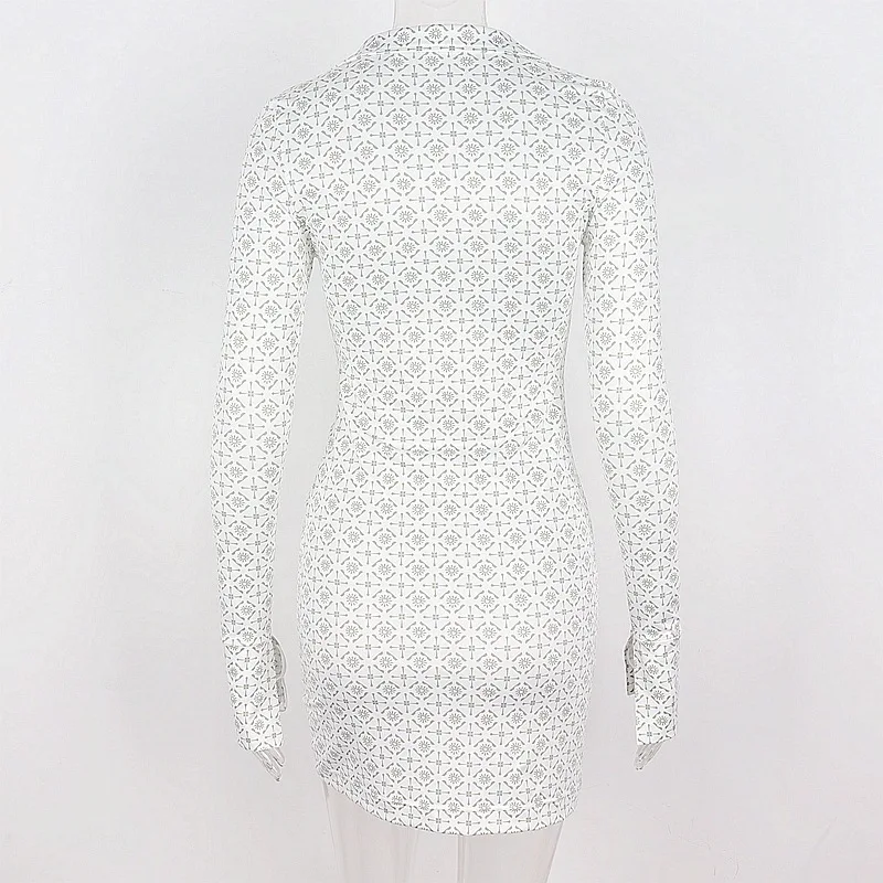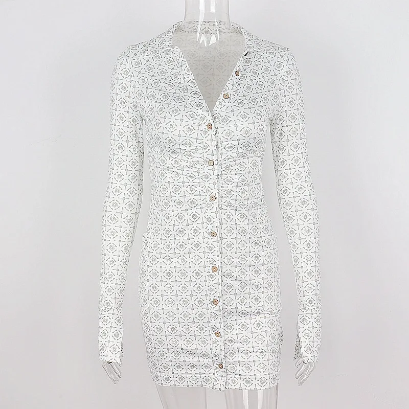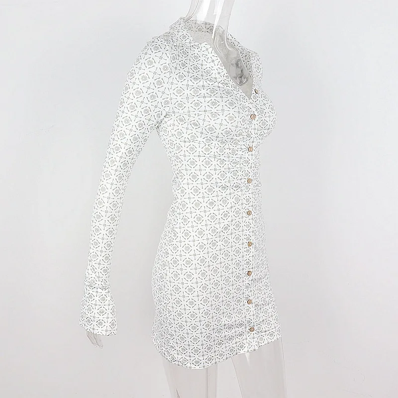 Cryptographic Fashion Print Shirts Dress Single Breasted Club Outfit for Women Fall Winter Long Sleeve Chic Mini Dresses Clothes