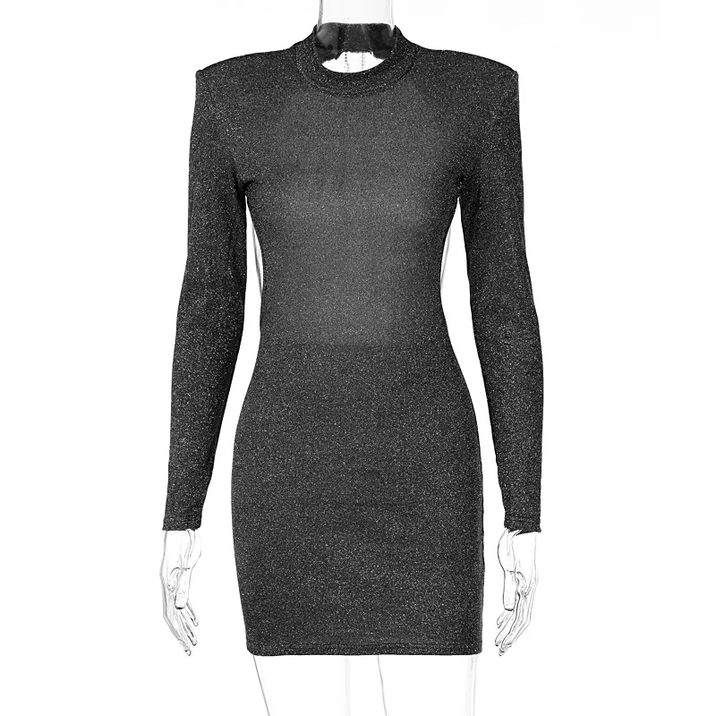 Cryptographic Sexy Backless Chain Glitter Party Dress for Women Clothes Vestido Elegant Outfits Autumn Long Sleeve Mini Dresses