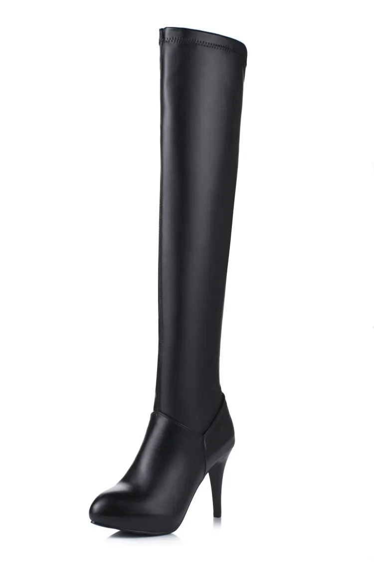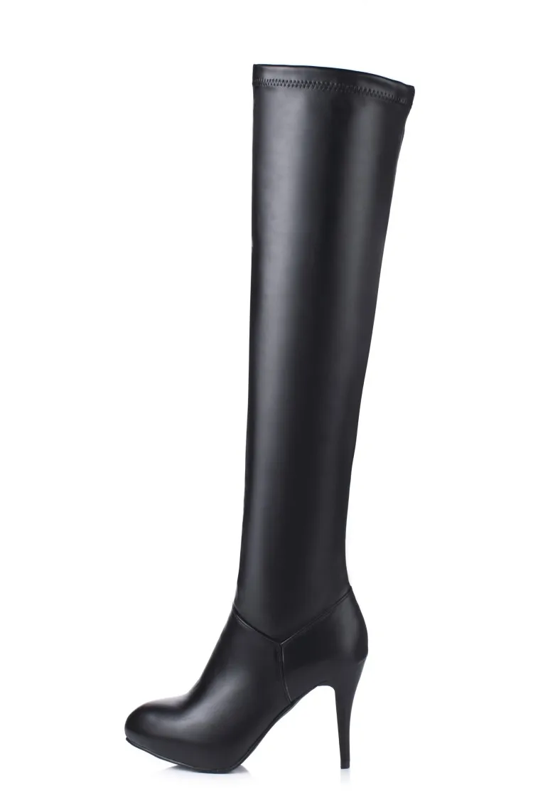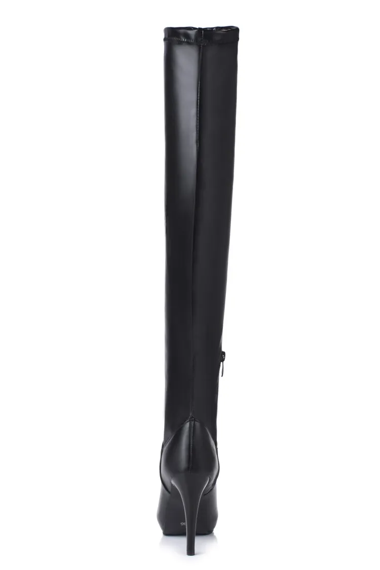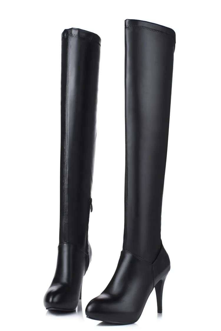Customized Size 32-45 Winter Women Black Long High Heels 10Cm Over Knee Zipper Leather Booties Zapatos De Mujer Boots Shoes T601