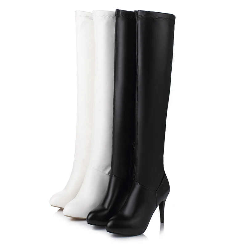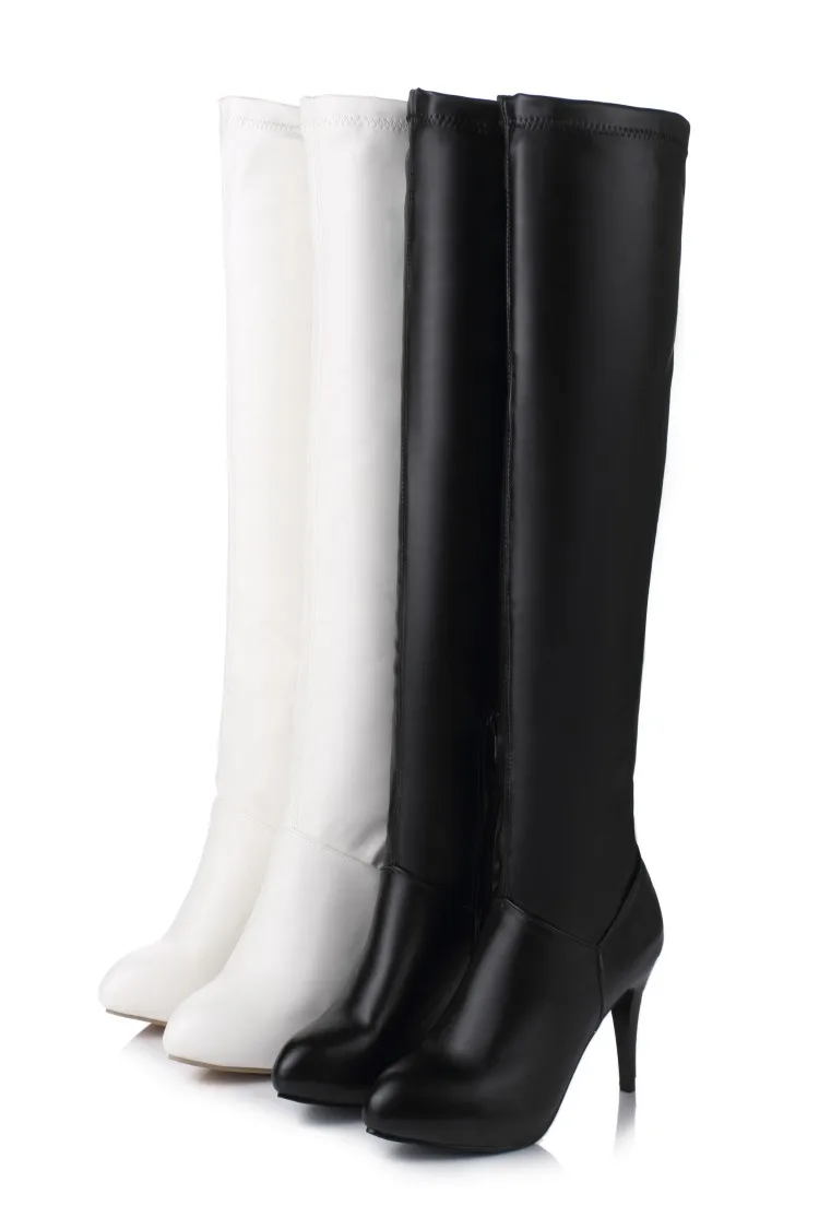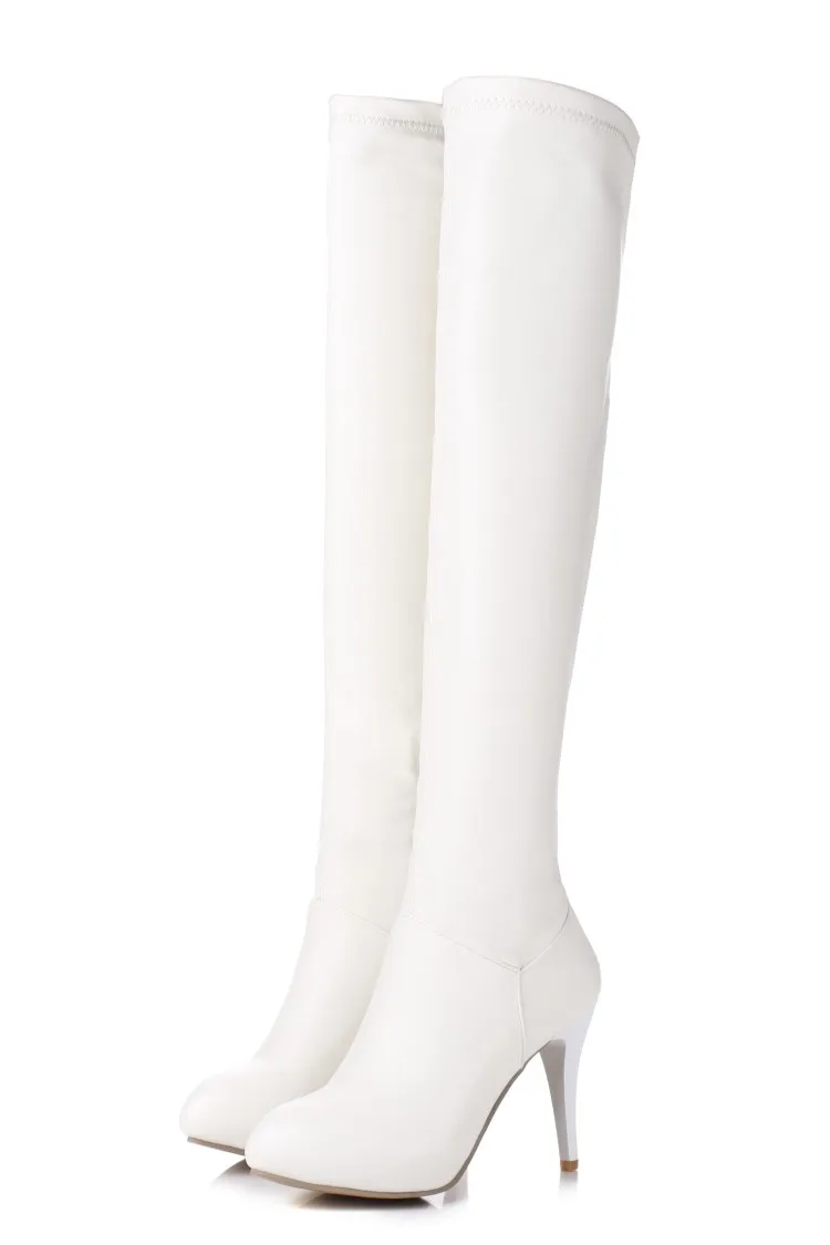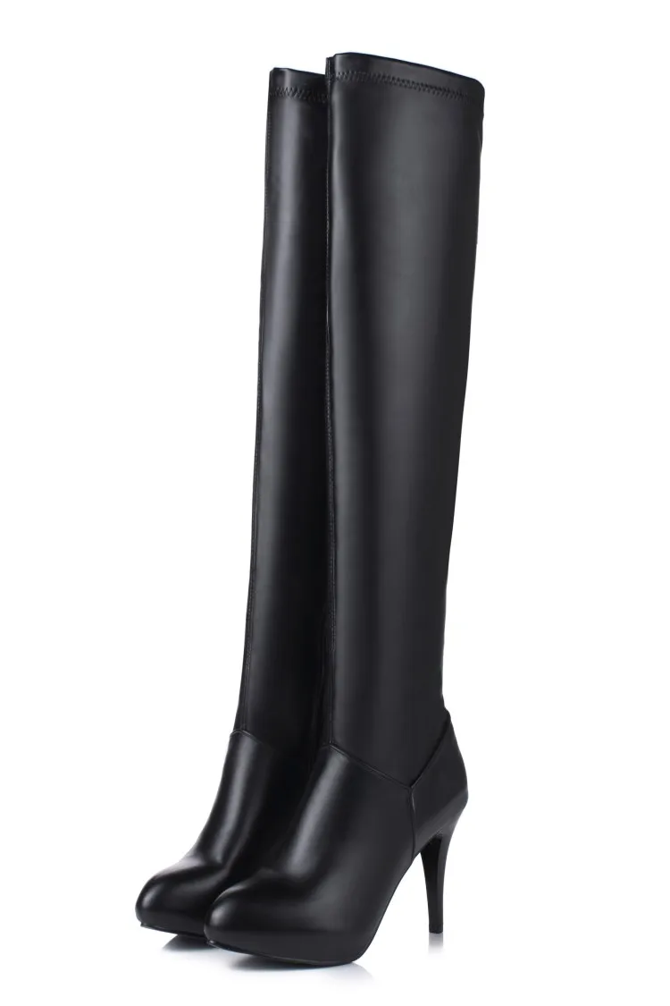 Customized Size 32-45 Winter Women Black Long High Heels 10Cm Over Knee Zipper Leather Booties Zapatos De Mujer Boots Shoes T601