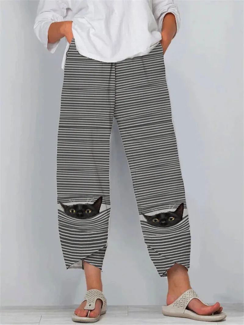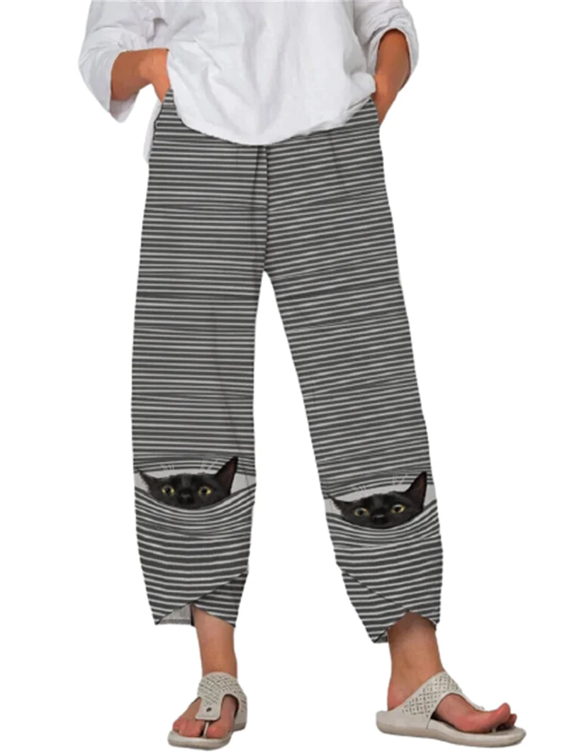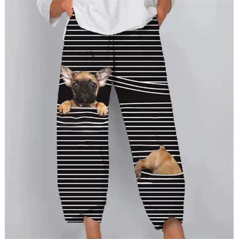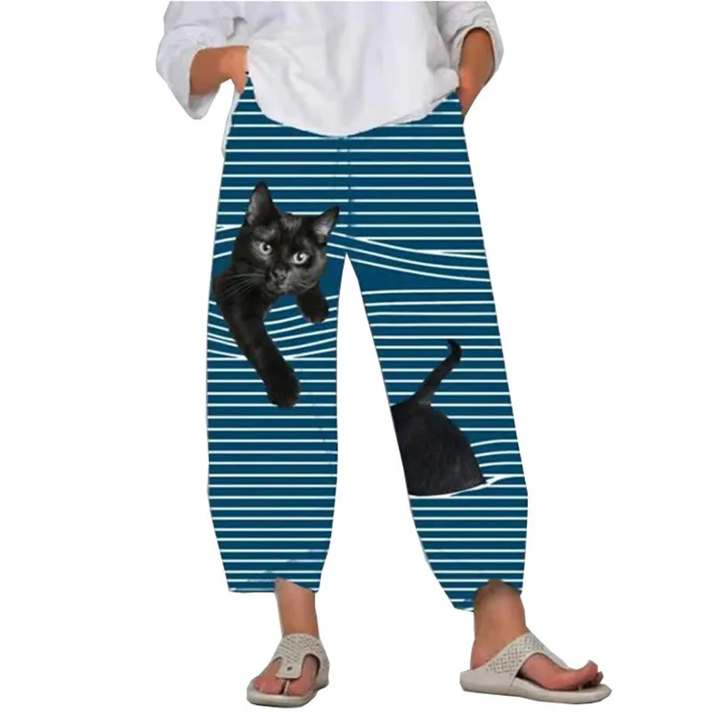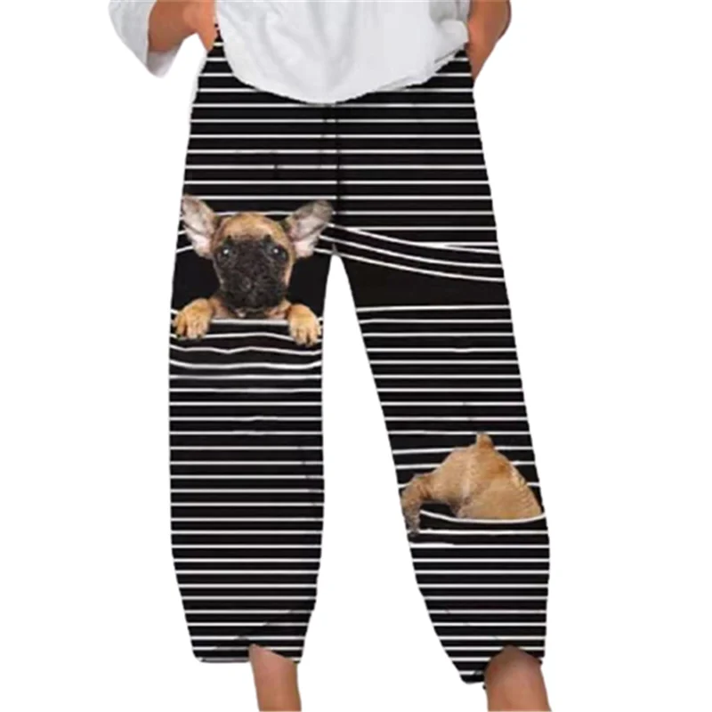 Cute Cartoon Print Women's Pants 2021 Spring Casual Elastic Waist Trousers Oversize Loose Beach Wide Leg Pants Plus Size S-5XL