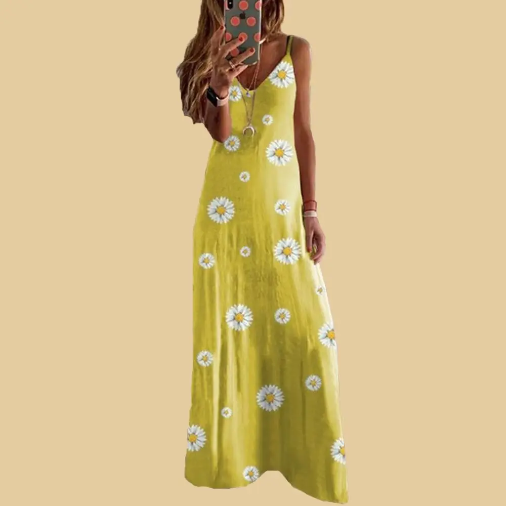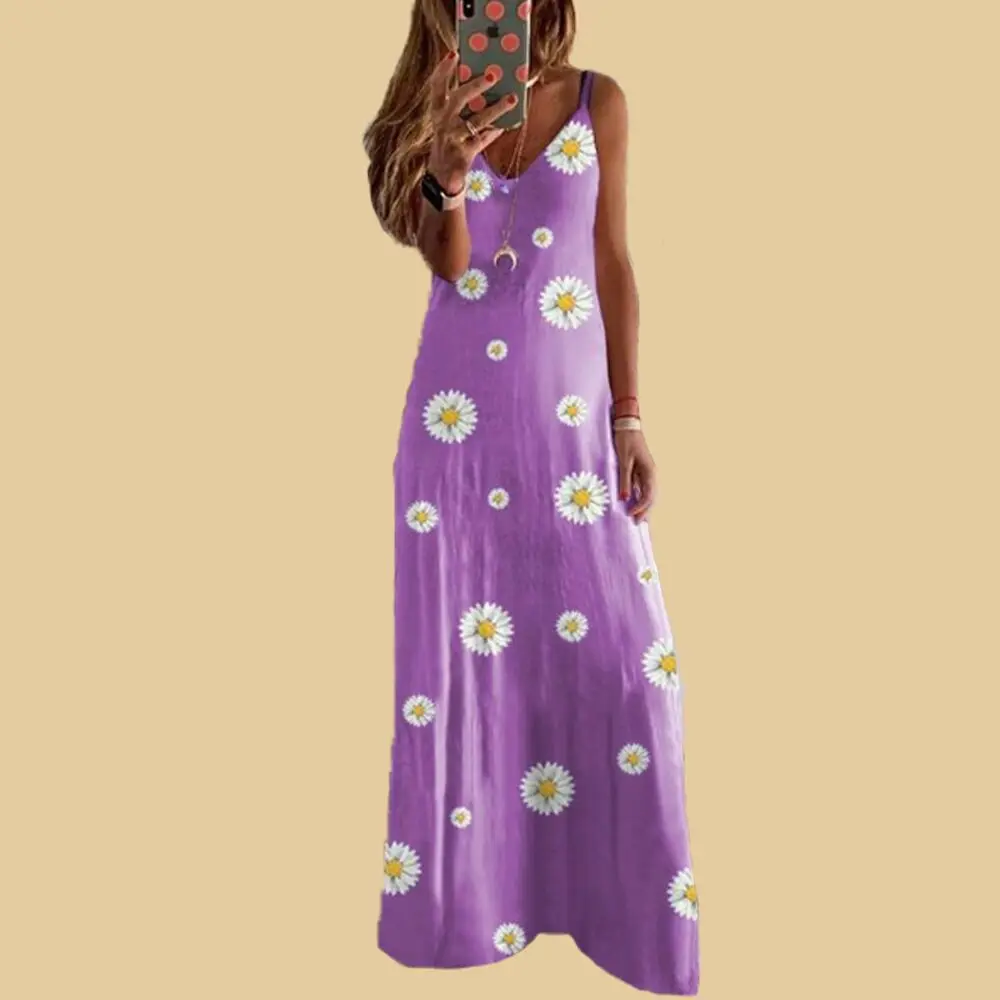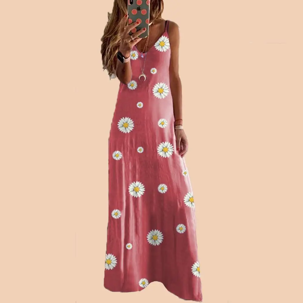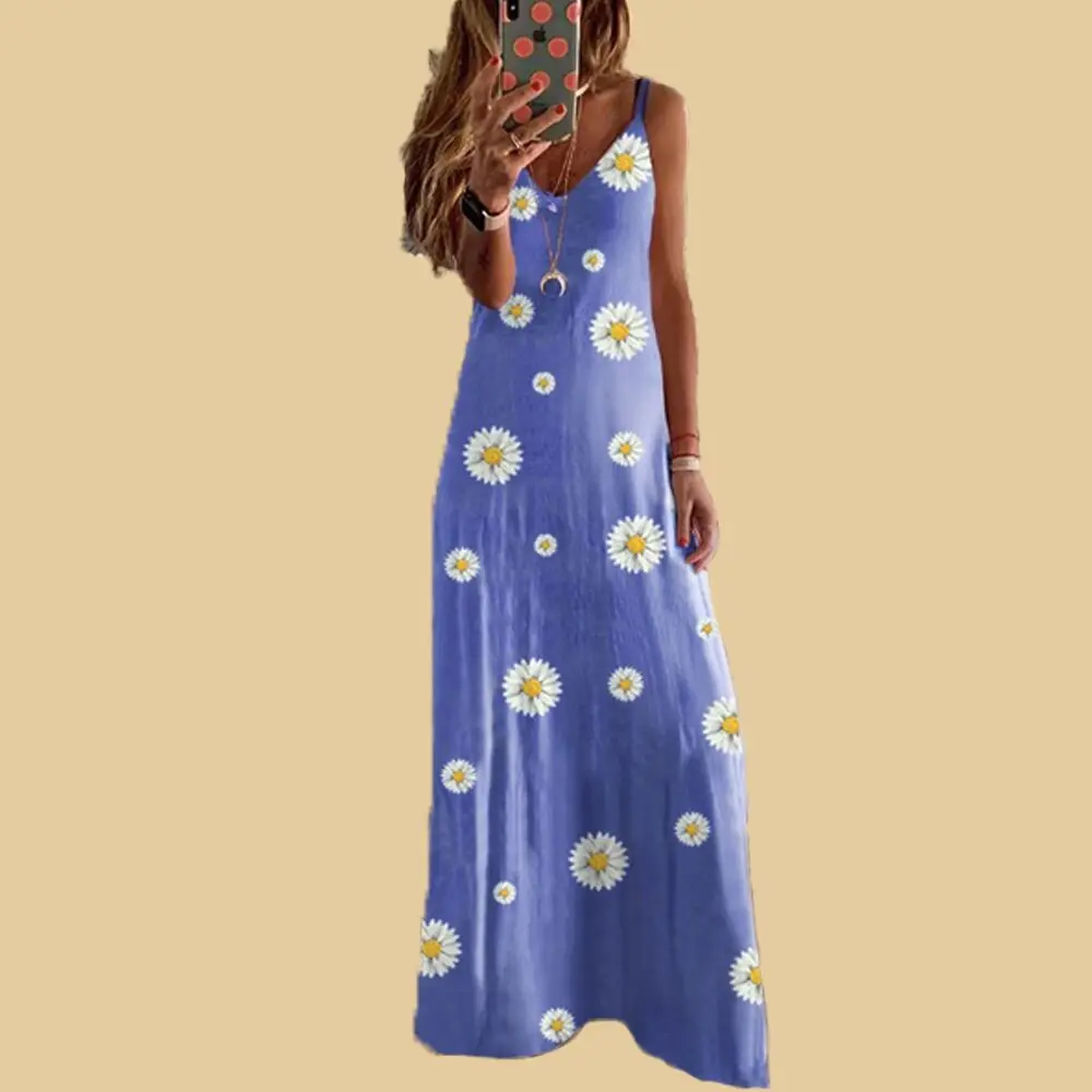 Cute Women Robe Floral Printed Summer Maxi Dress V-neck Sleeveless Off Shoulder Long Dress ETSTWENDY Sexy Women Dress S-New