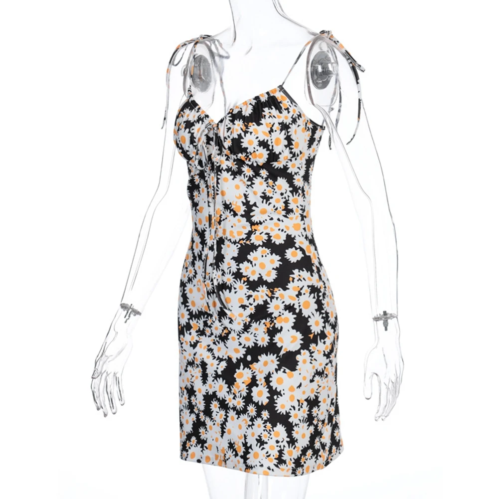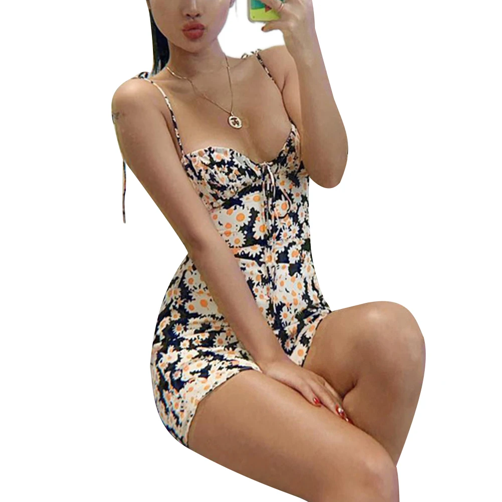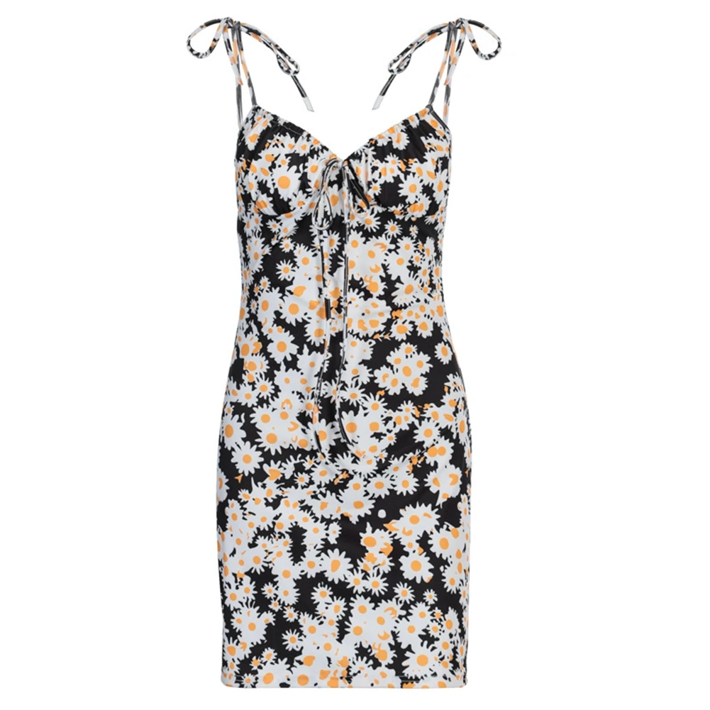 Daisy Dress Women Ladies Casual Sleeveless Bodycon Slim Straight Mini Dress Summer Streetwear Girls Sweet Flower Print Sundress