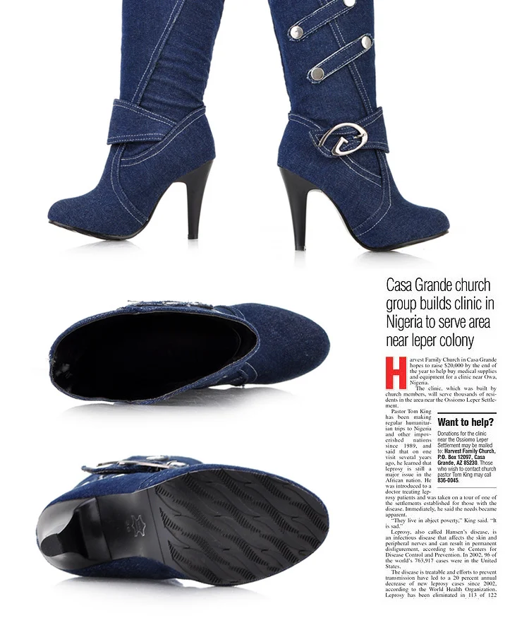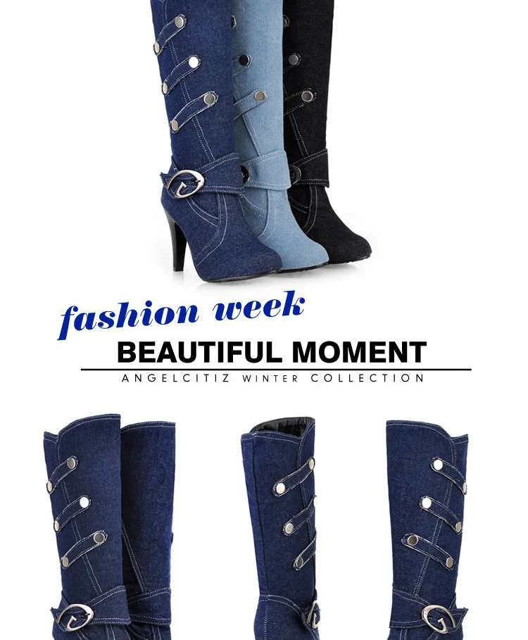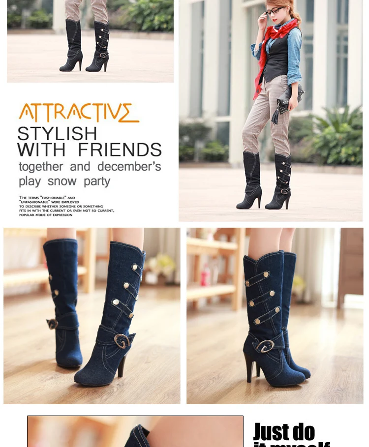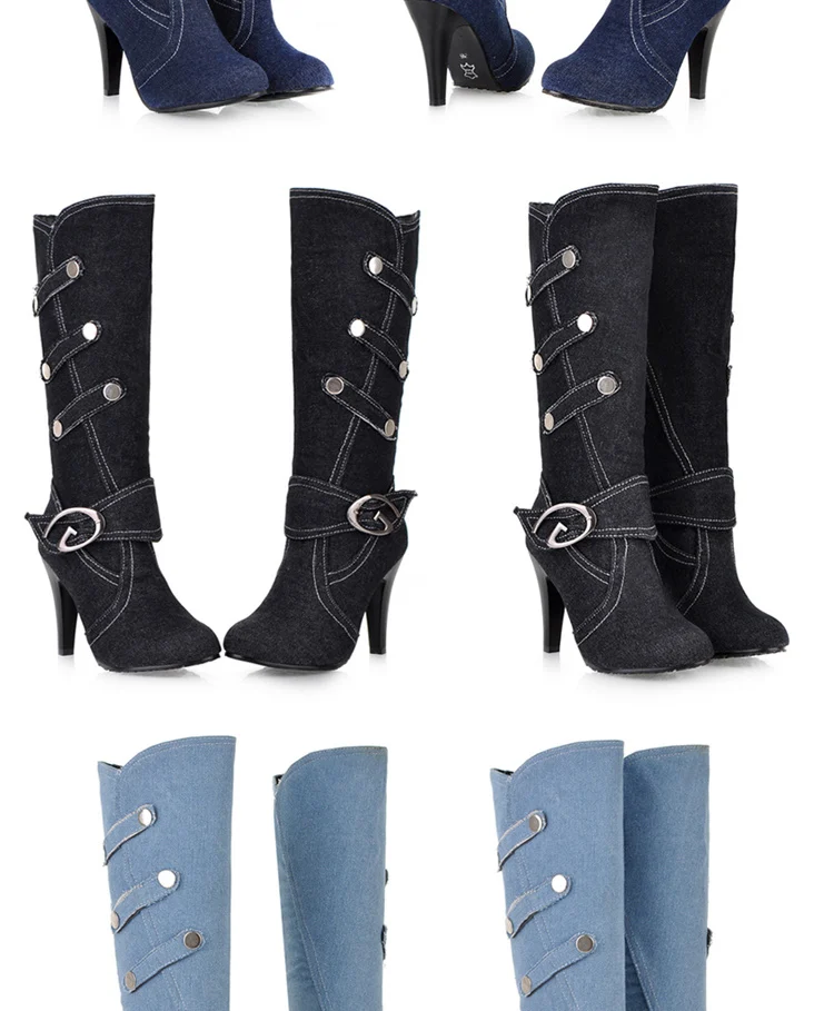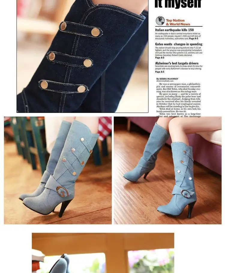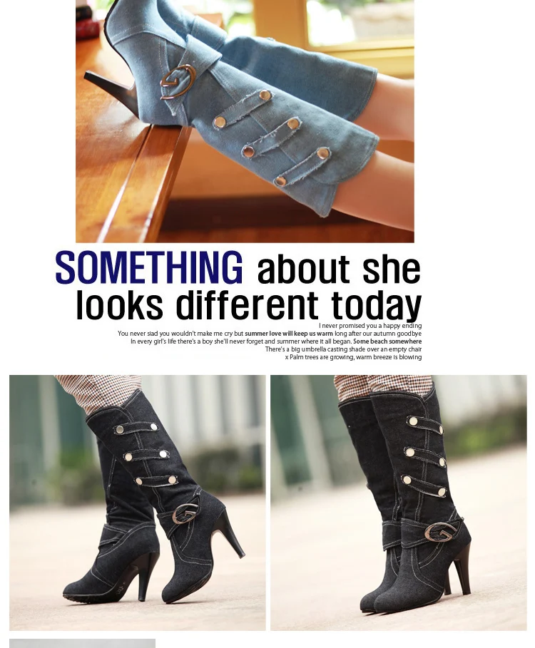 denim high-heeled boots thin heels boots women's shoes spring and autumn high-leg boots boots