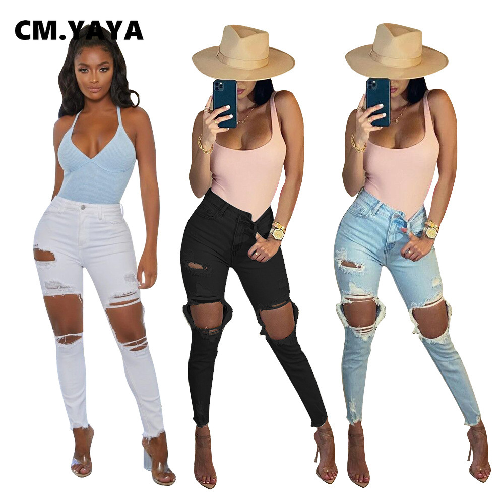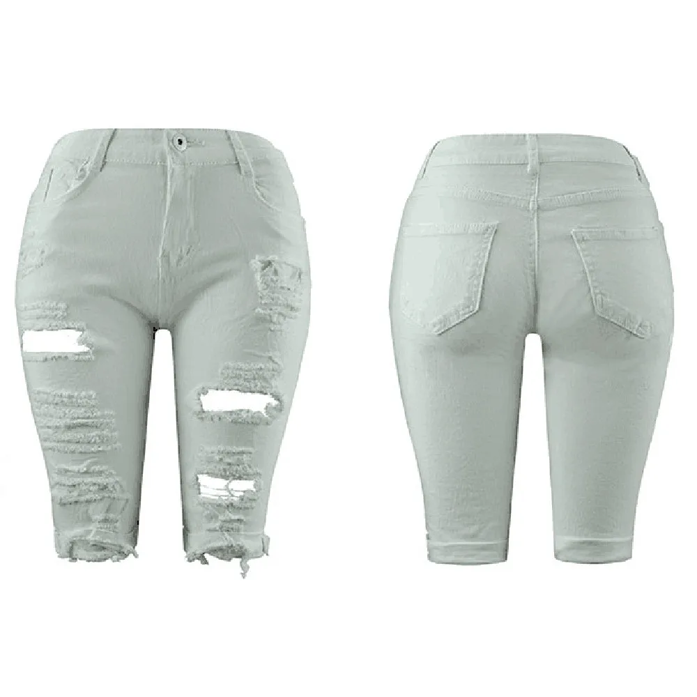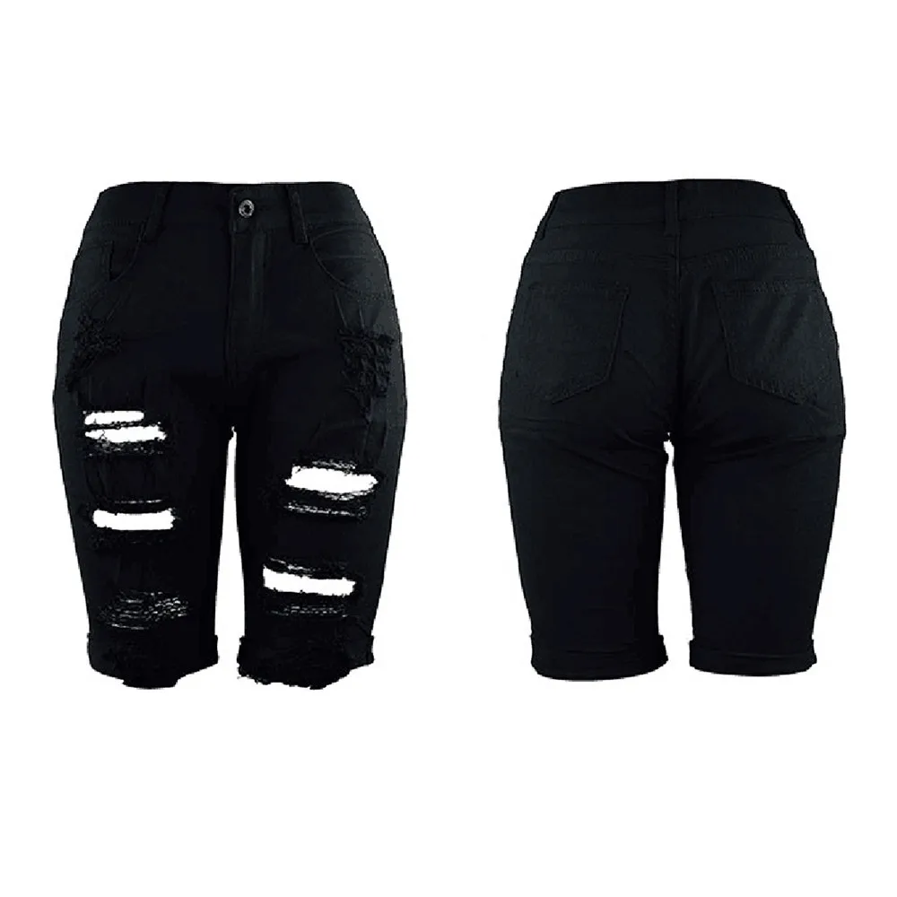 Women Elastic Destroyed Hole Leggings Short Pants Denim Shorts Ripped Jeans