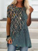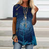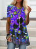 Digital Printed Women Blouse Short Sleeve Loose Shirt Summer Fashion Casual Lady Pullover Shirt Star Flower Print Plus Size 5XL