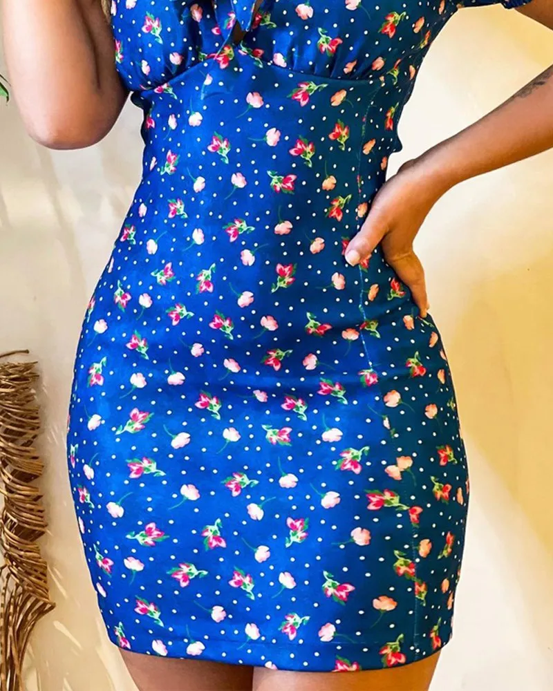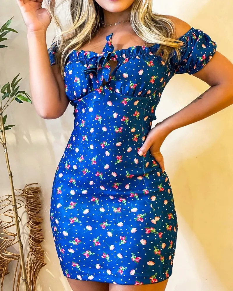 Ditsy Floral Print Off Shoulder Tied Detail Bodycon Dress