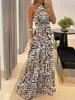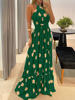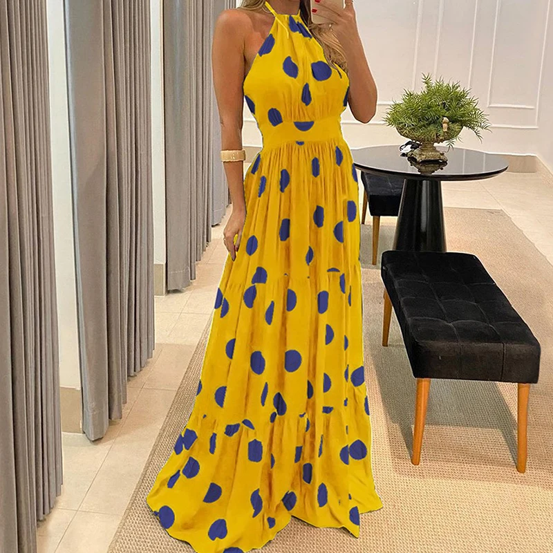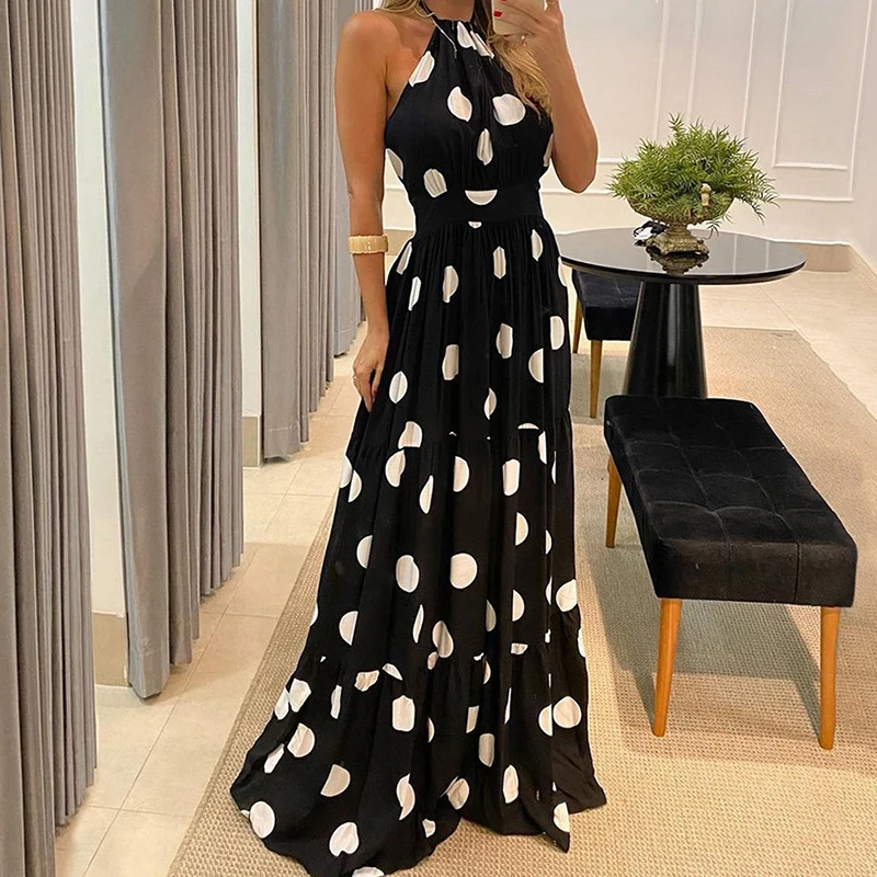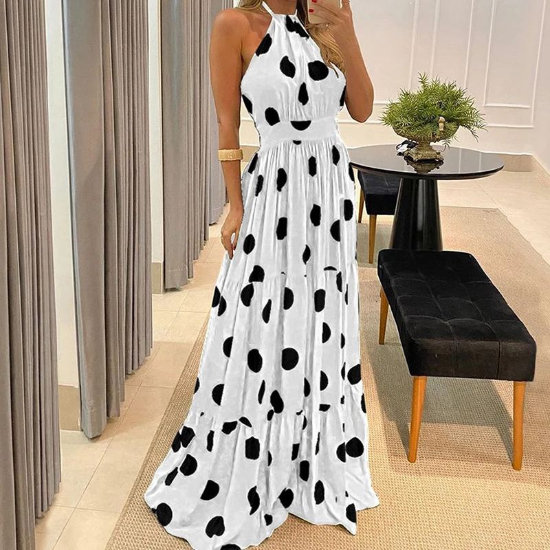Dot Print Dip Hem Fashion Bohemian Dresses for Women Round Neck Sleeveless Floor Length Loose Dress Women