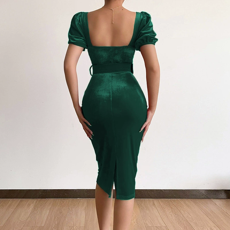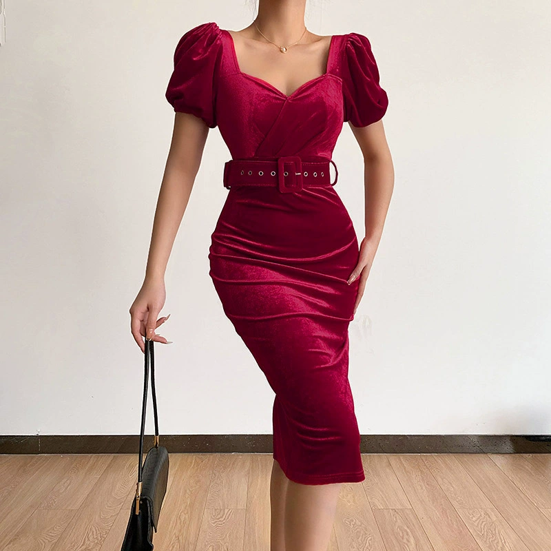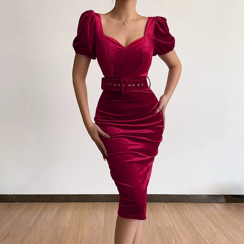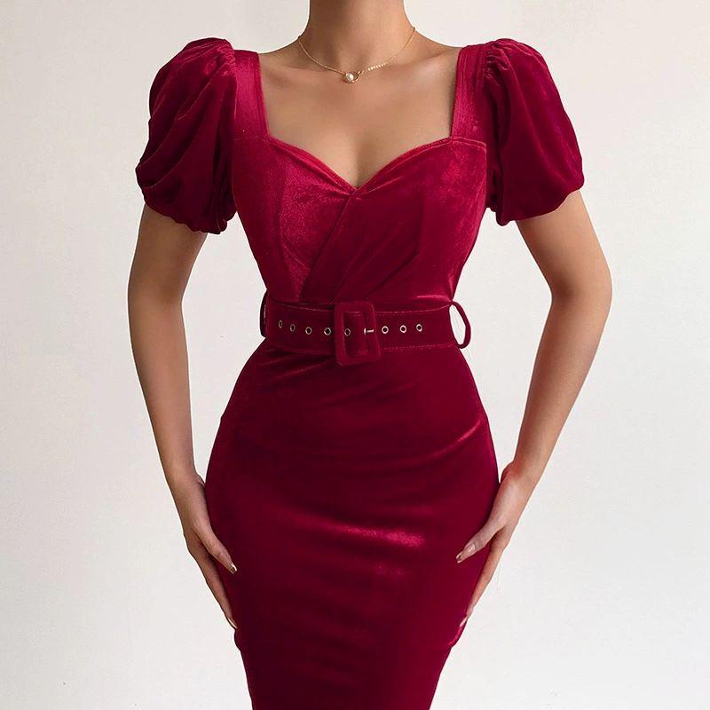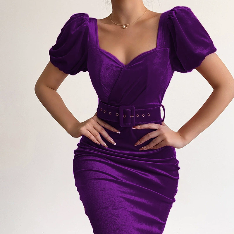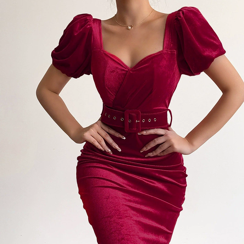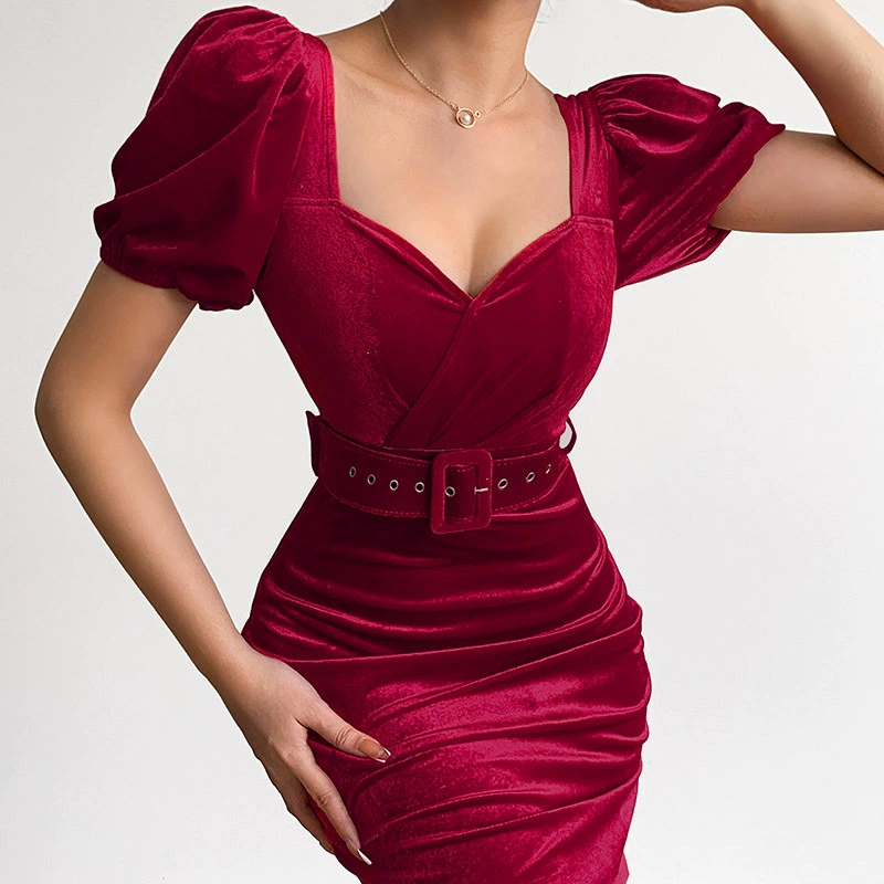 dresses for women 2022 Sexy Slim Mini Dress Solid Color Corset Low Neck Puff Sleeves Velvet Bag Hip Night Club Party платье