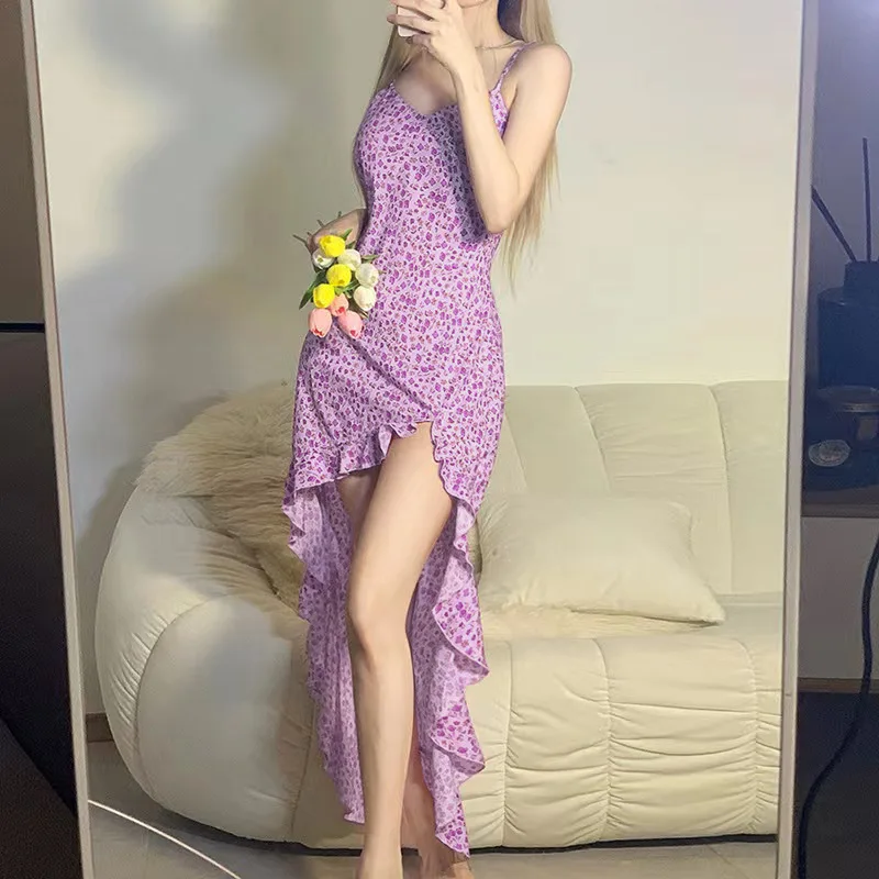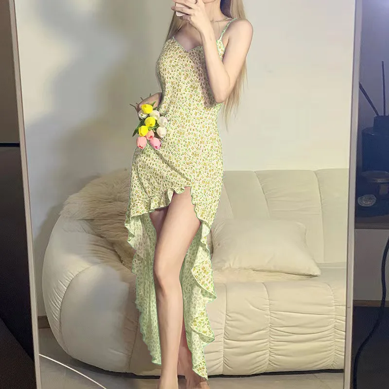 dresses for women 2022 Summer New Casual Fashion Suspenders dress Sexy V-neck Low-cut Irregular Print Ruffled Ladies dress robe