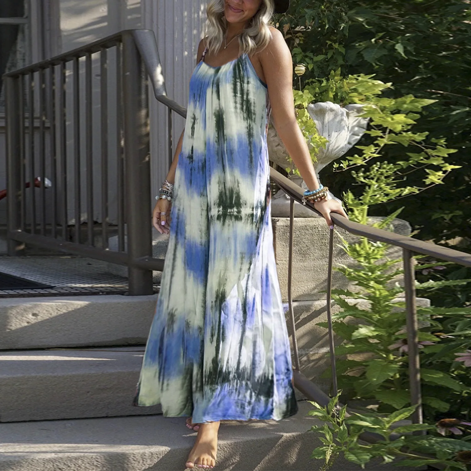 dresses for women 2022 Summer New Casual Ladies robe Tie-Dye Striped Sexy Sling Sleeveless Open-Back Loose dress платье женское