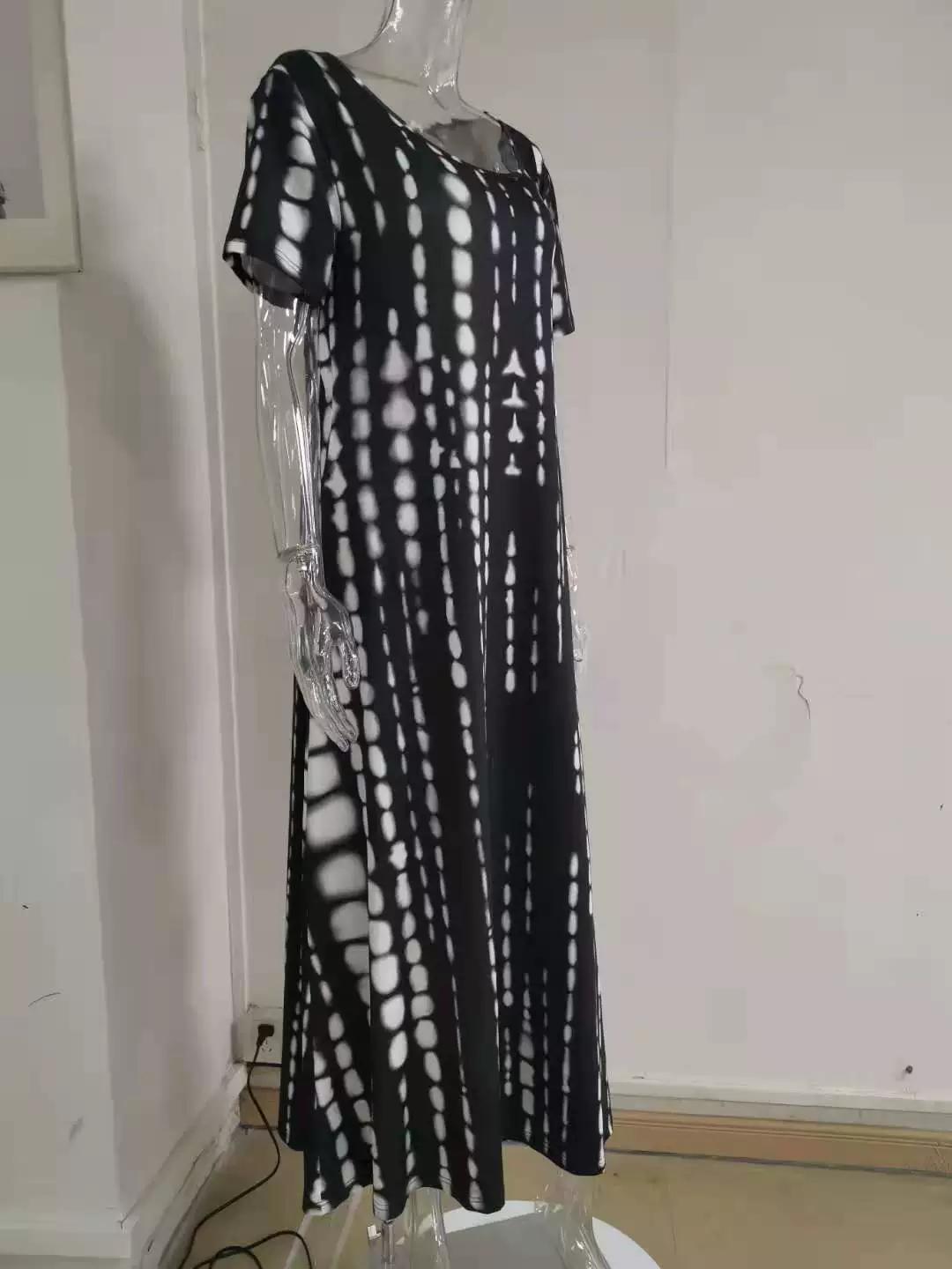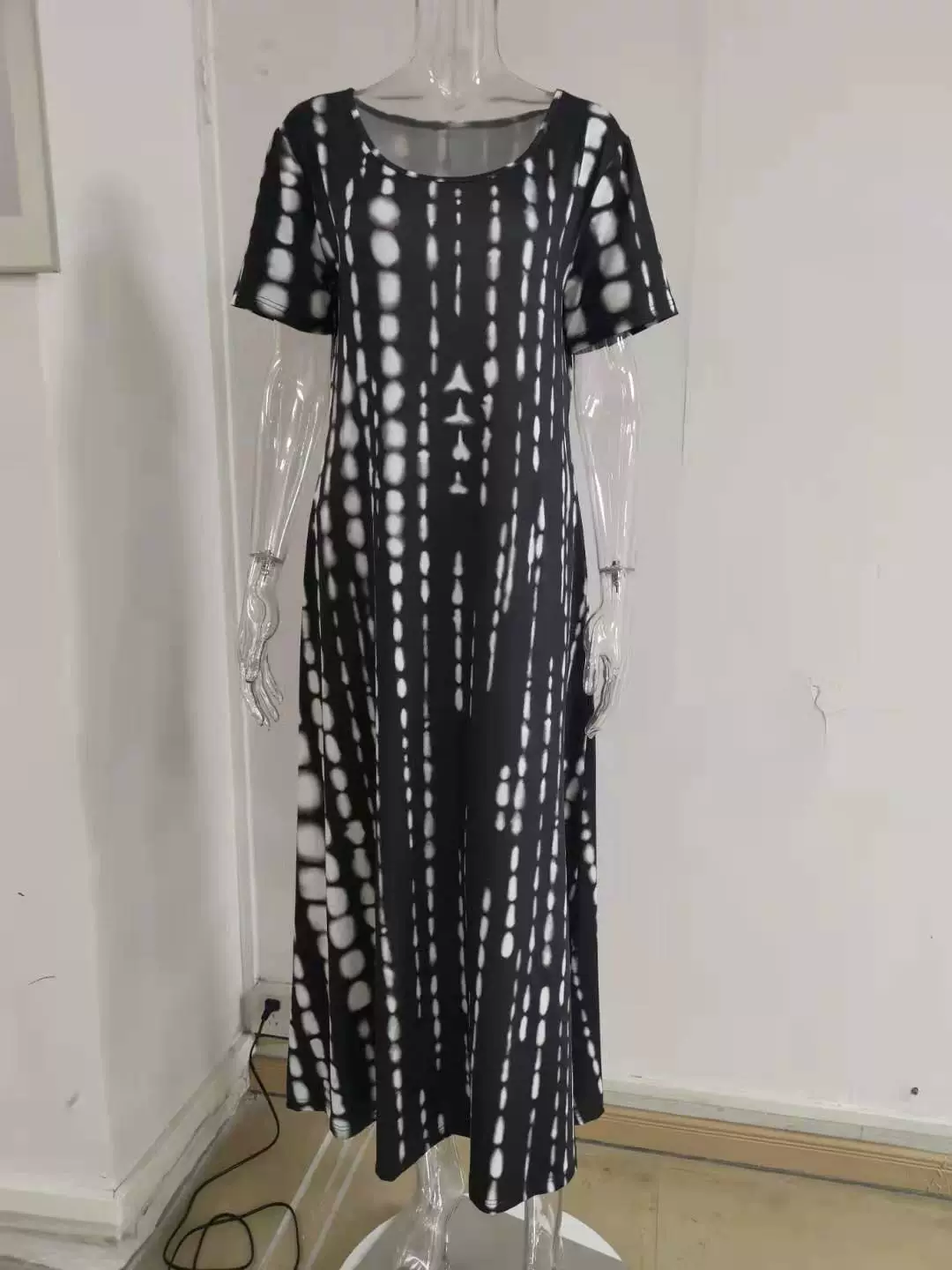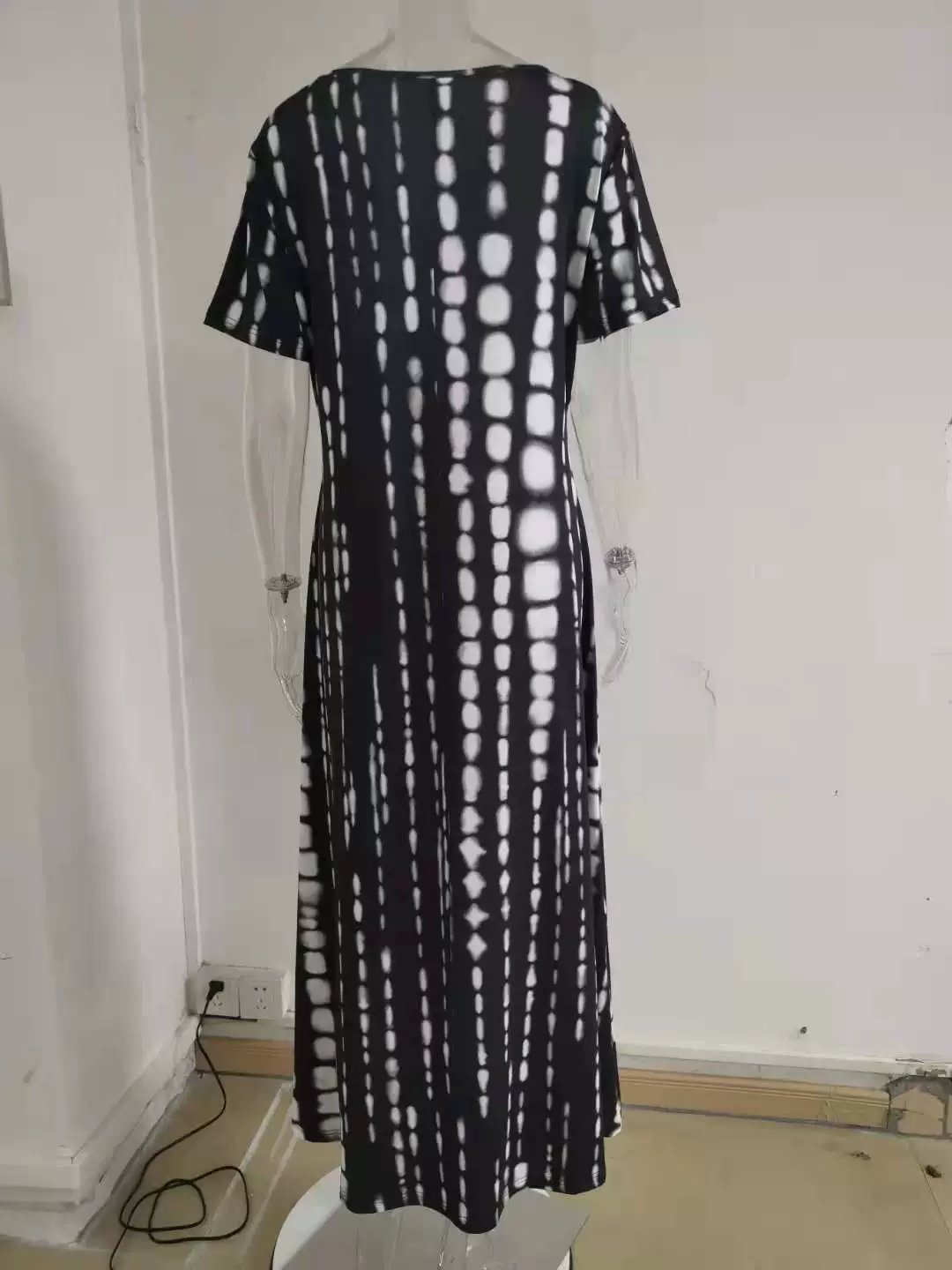 dresses for women 2022 Summer New Casual O-neck Short-Sleeved Tie-dye Print Large Swing robe Ladies dress платье женское dress