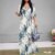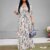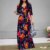 Dresses for Women Floral Print Maxi Dress Flowy 3/4 Sleeve with Belt