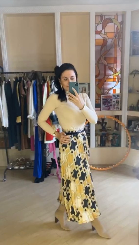 Size L per height 170, weight 54 kg (OG 89) good. The store in the photo color beige is cooler, in reality it is with a warm shade.