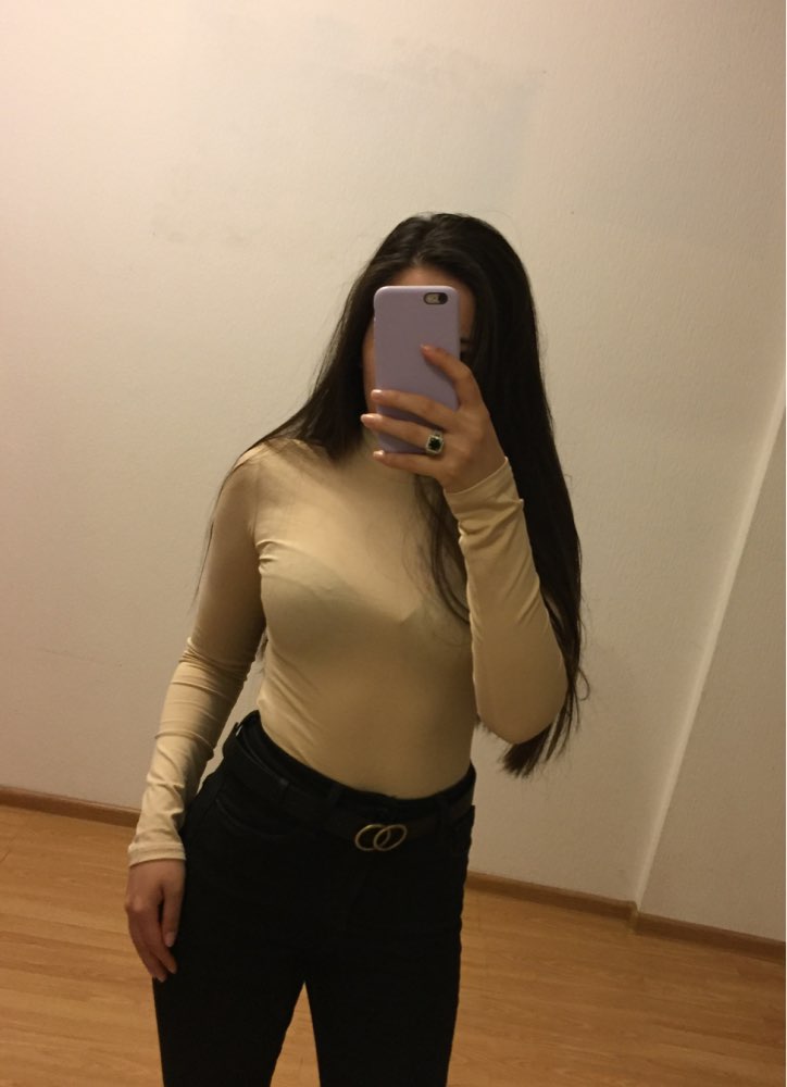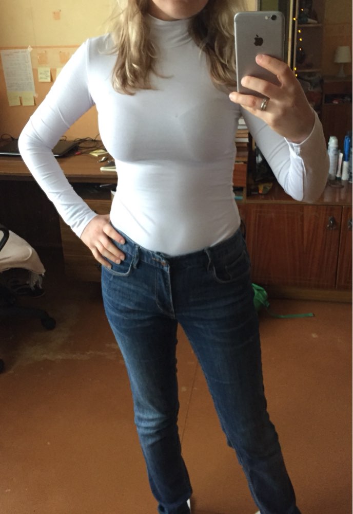 Nice body. With the size did not lose (the size grid of the store corresponds). 95% cotton, 5% elastane, pleasant to the body, not very dense, wear under Tele seamless underwear (or just with smooth cups)