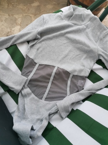 crotch struggles to snap and neck is loose, otherwise good. shipping 6 months.