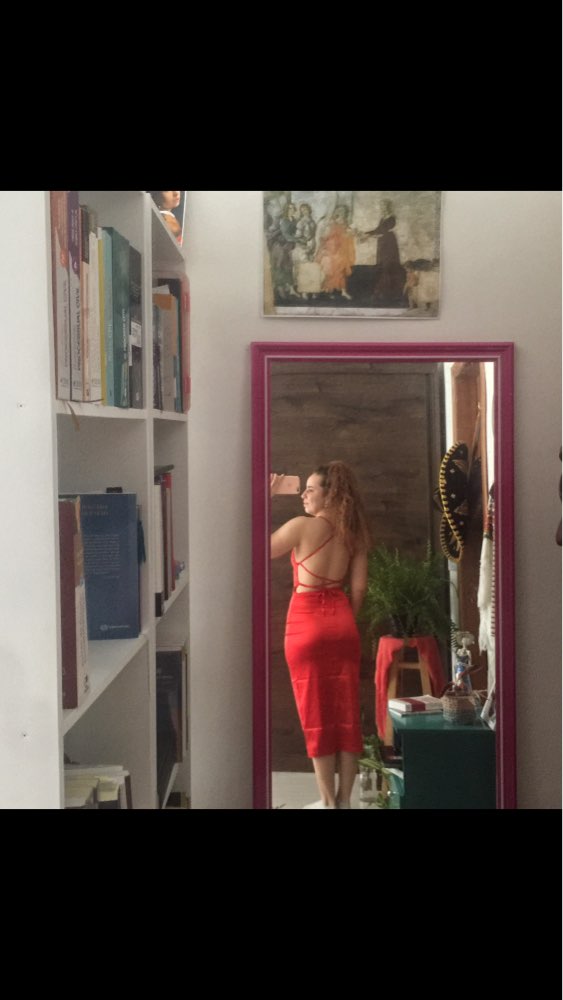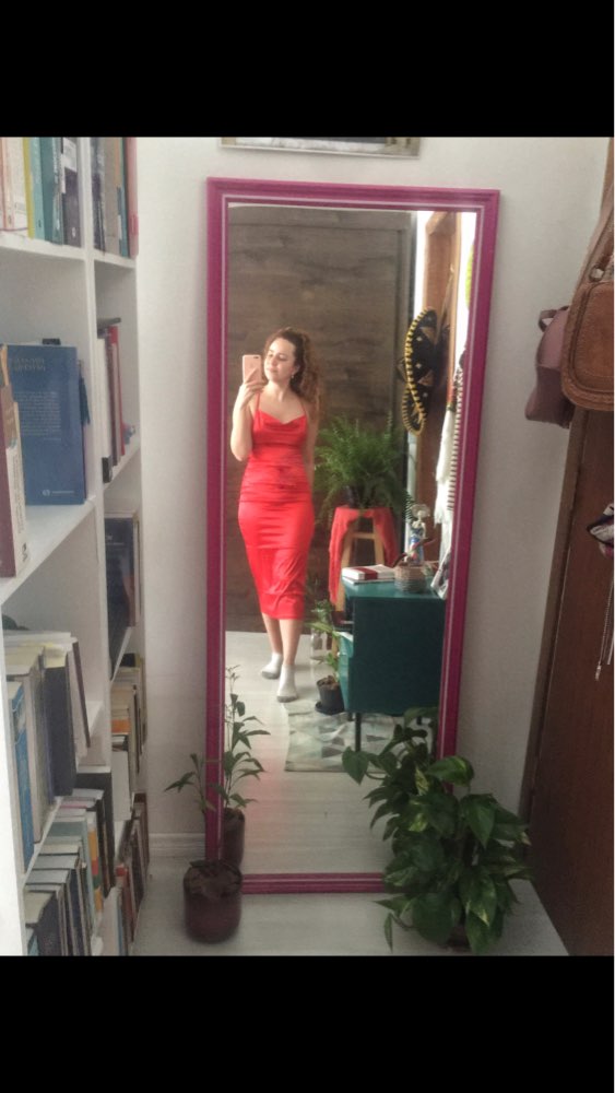 Reçue en deux semaines, très bonne qualité, est un peu stretch donc comfortable, taille parfaite, assez légère pour l’été mais pas transparente, je fais 1m68 et elle m’arrive en dessous des genoux, rien a dire, robe parfaite !!!