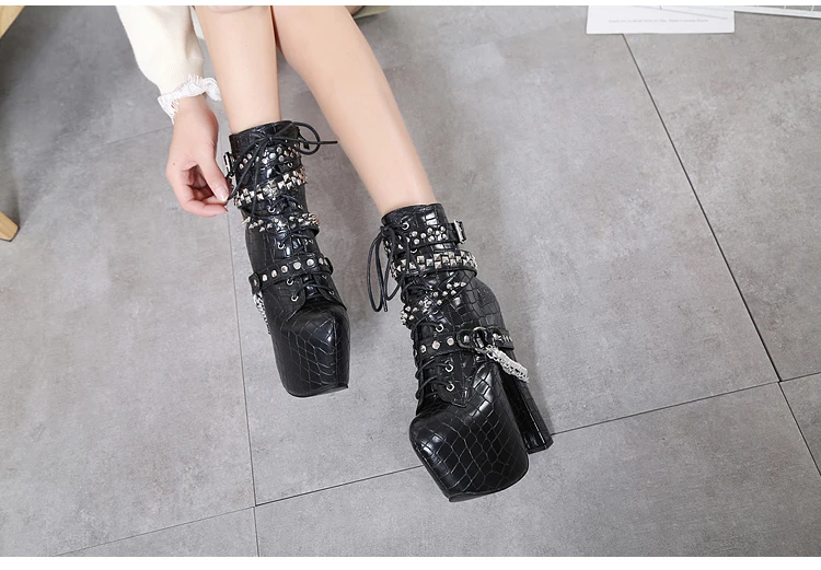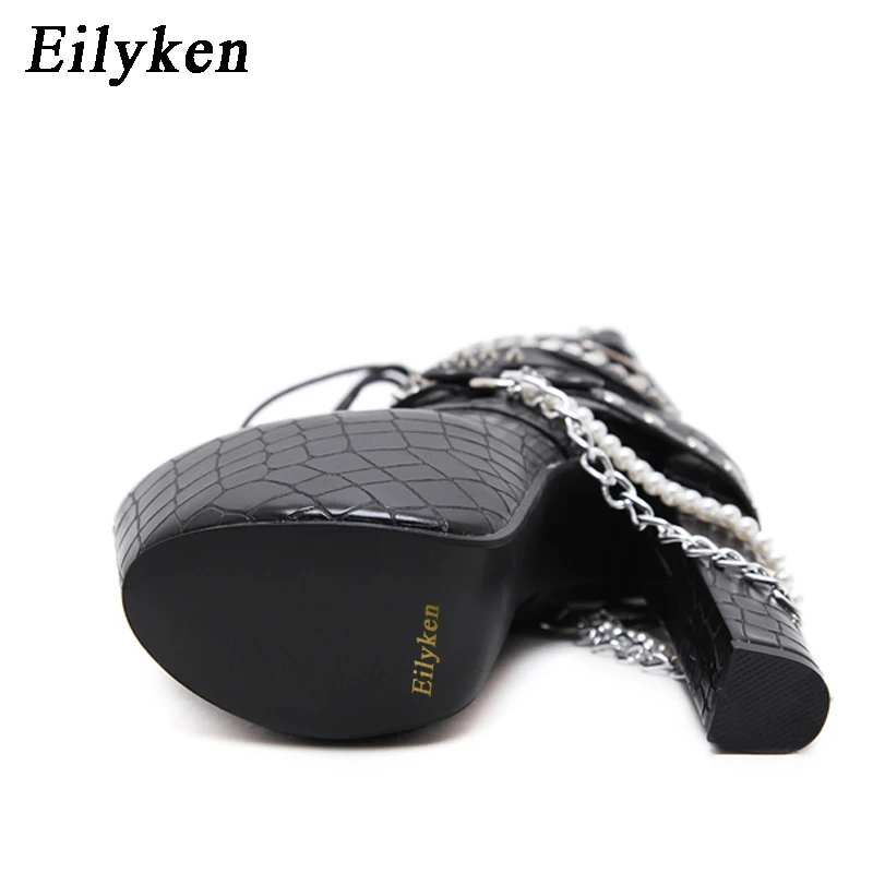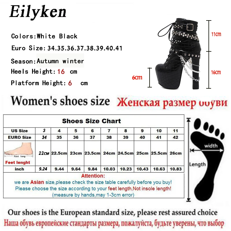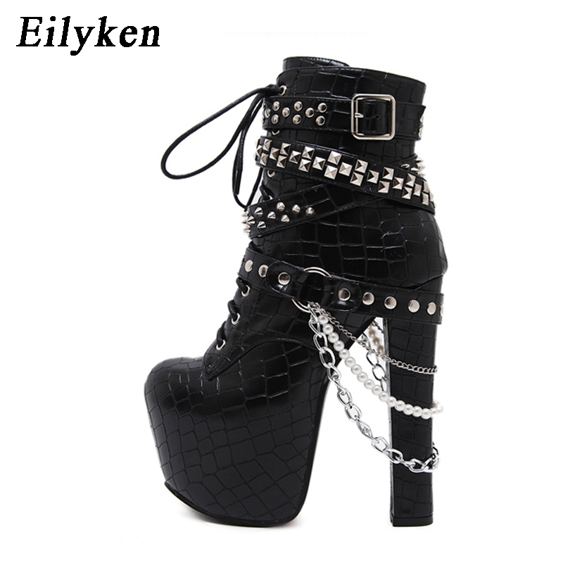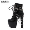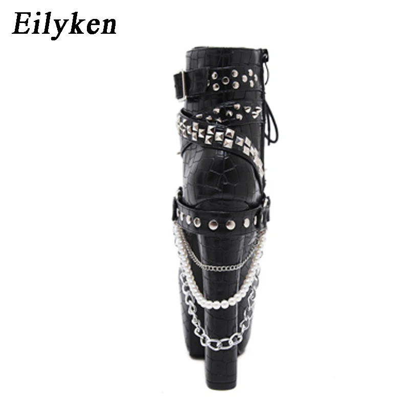 Eilyken 2022 Autumn Winter Fashion Women Boots Square heel Platform Buckle Riding Booties Chain Rivet Ladies Pumps Shoes Size 40