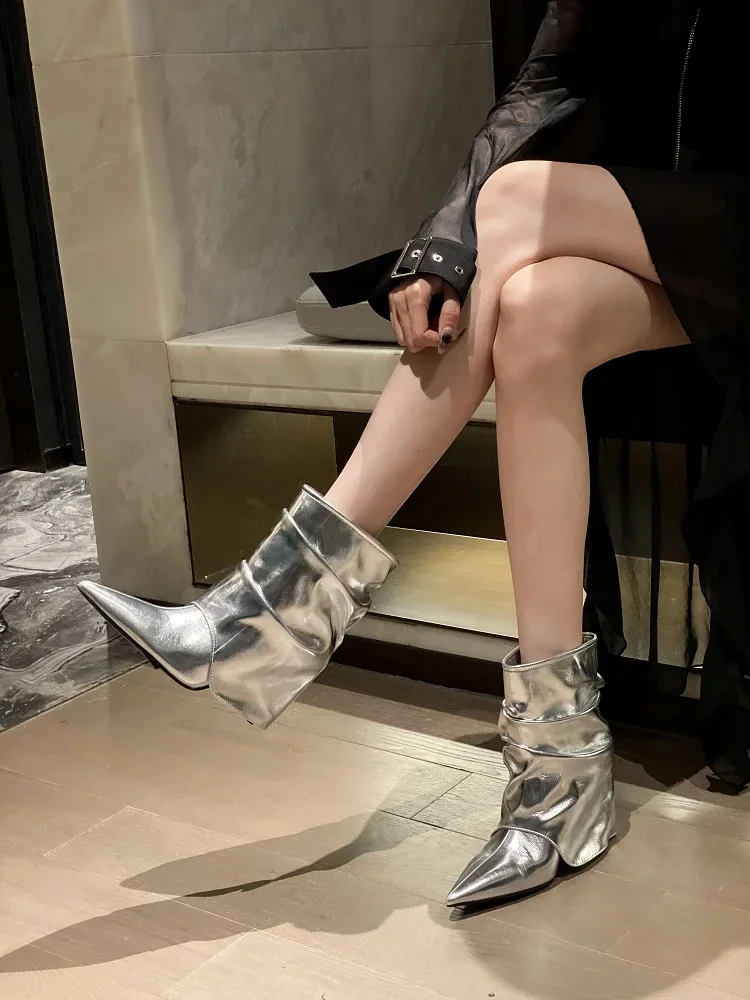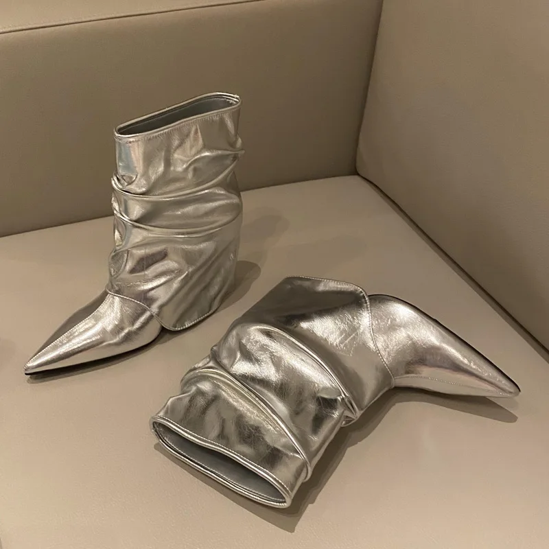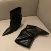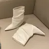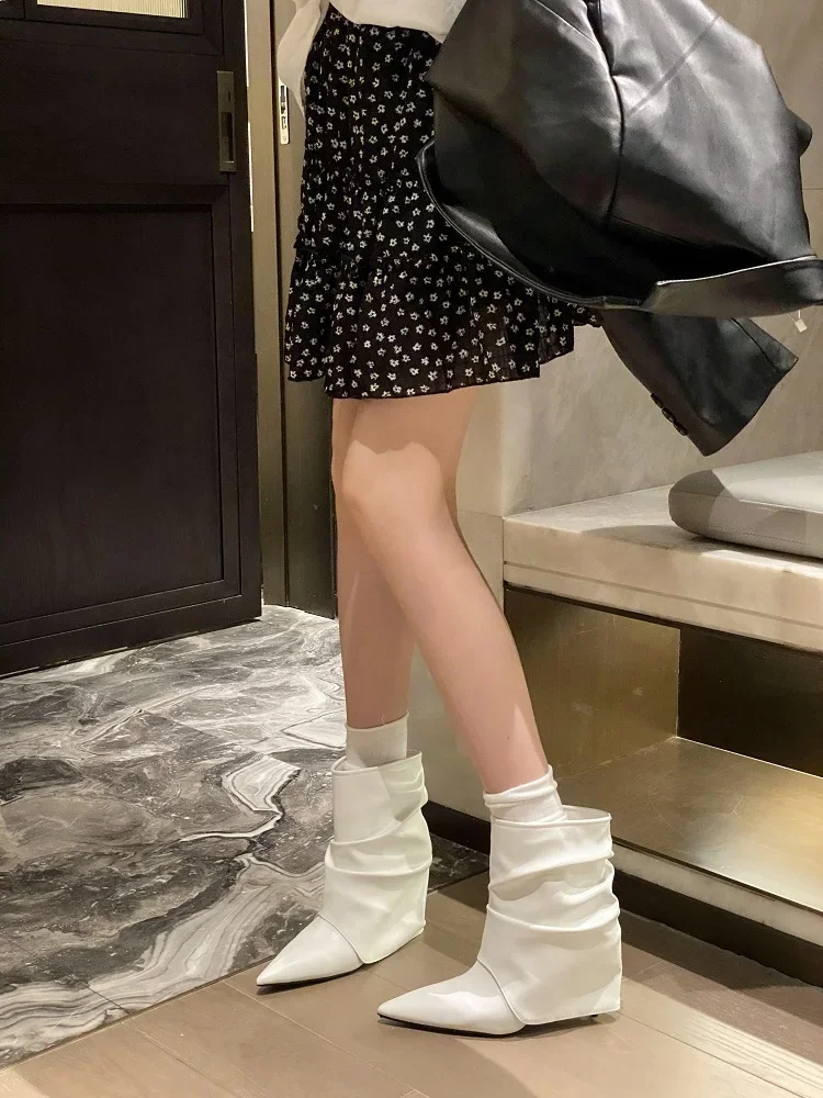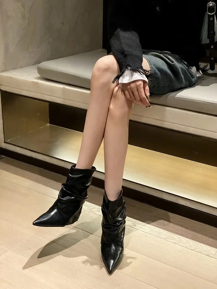 Eilyken 2025 Autumn Winter Pleated Pointed Toe Women Ankle Boot Wedges High Heels Banquet Prom Street Style Female Shoes