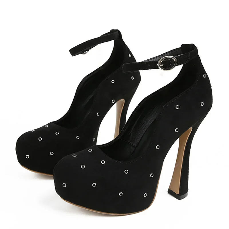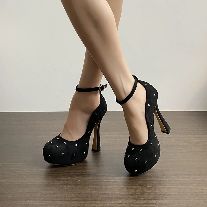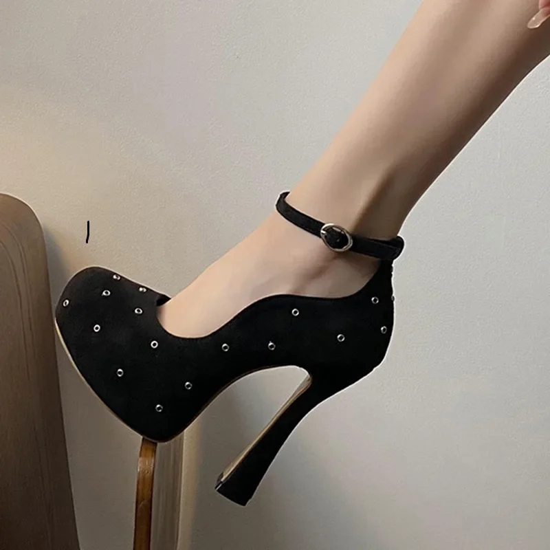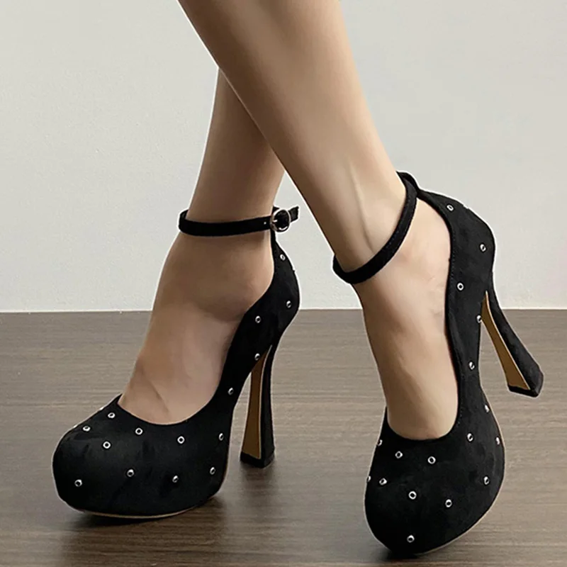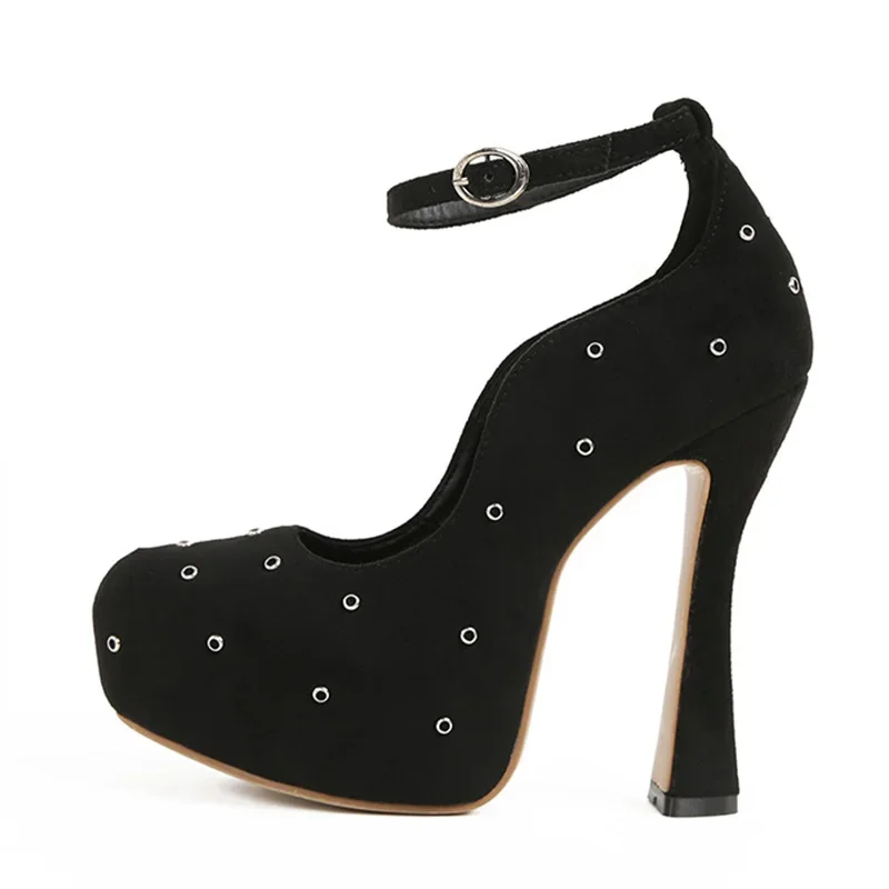 Eilyken 2025 Chunky Platform Ultra High Heels Women Pumps Street Style Rivet Buckle Strap Nightclub Party Female Shoes