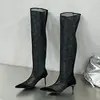 Eilyken 2025 New Design Mesh Pointed Toe Over The Knee Boot Sandals Fashion Women Zipper Thin Heels Shoes Zapatos De Mujer