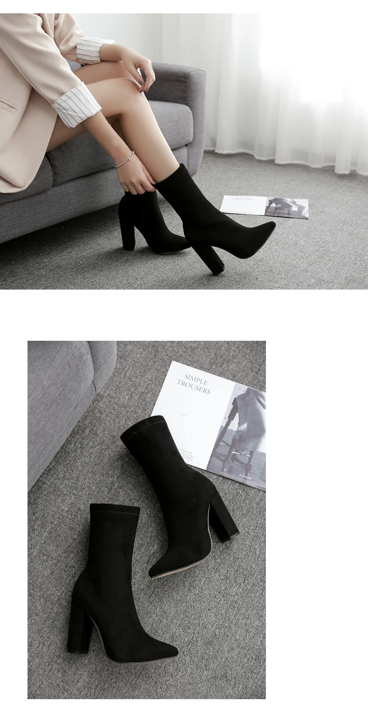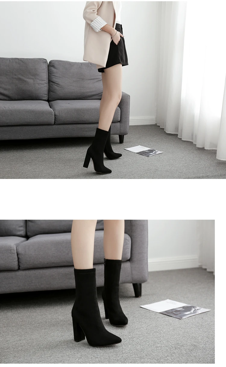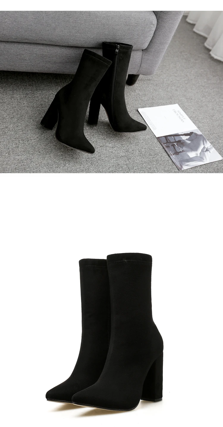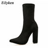 Eilyken 2025 New Flock Ankle Boots Women For Autumn Winter Fashion Pointed Toe Heel Zipper Ladies Chelsea Shoes Plus Size 35-42
