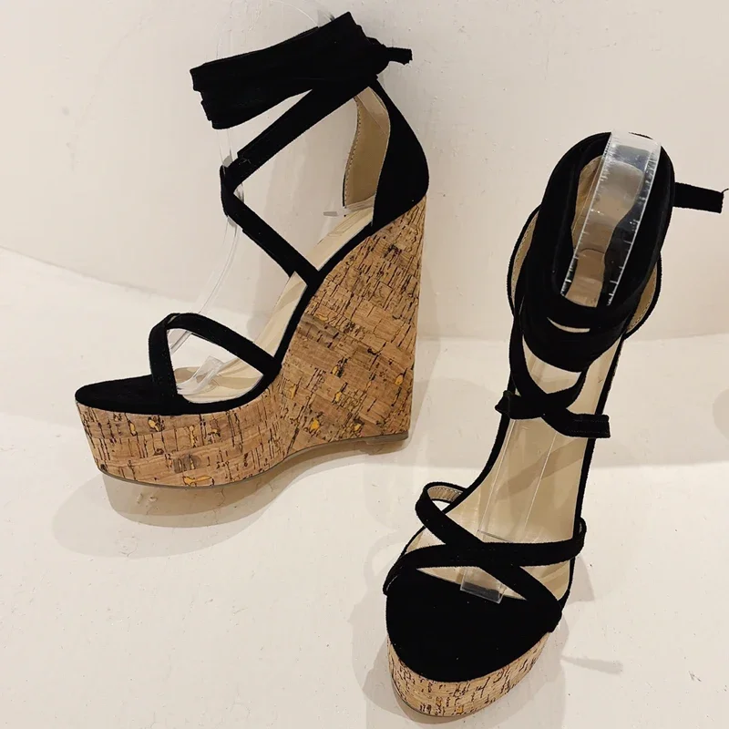 Eilyken 2025 Summer Fashion Ankle Lace-up Platform Wedges Women Sandals Hollow Out High Heels Open Toe Banquet Shoes