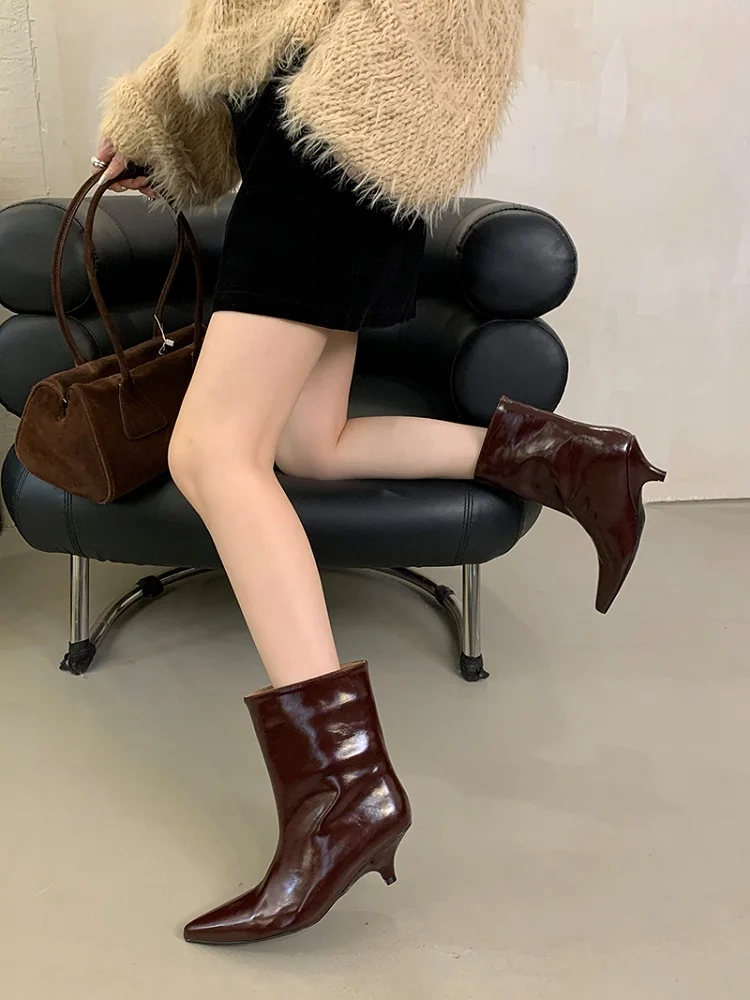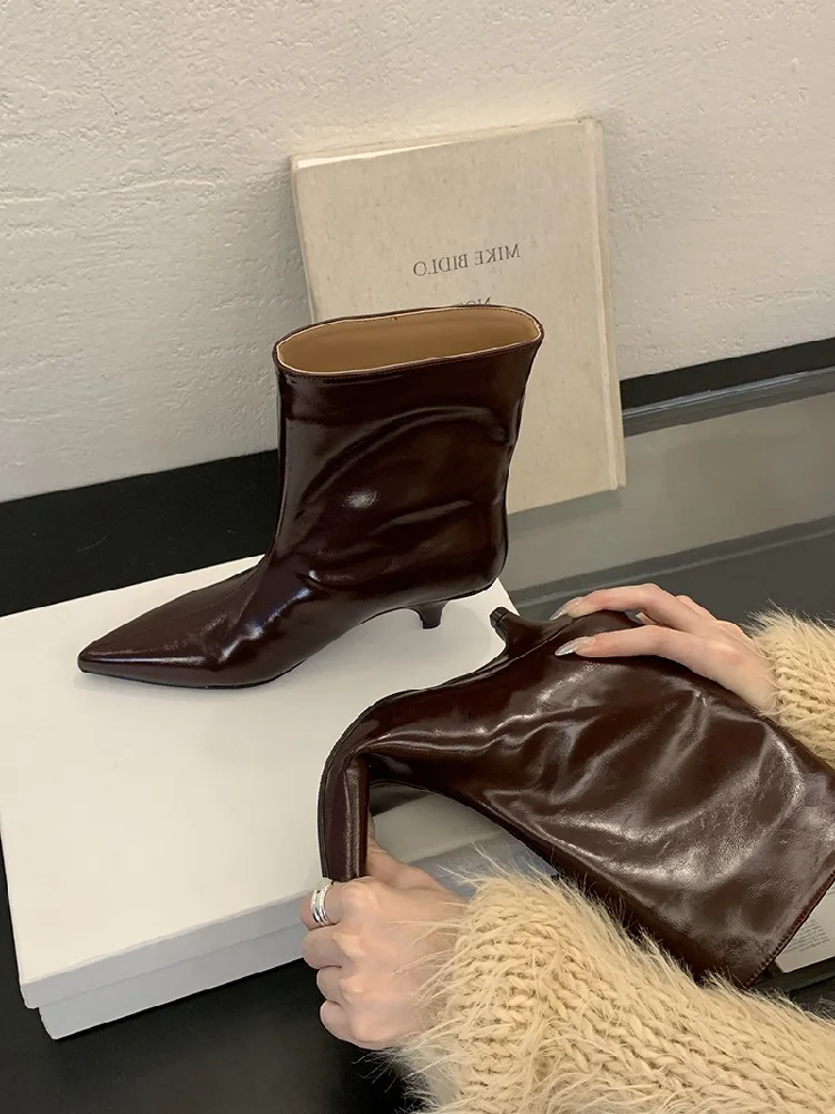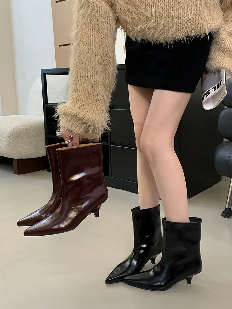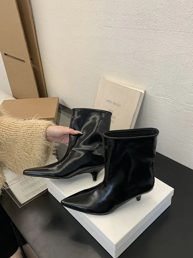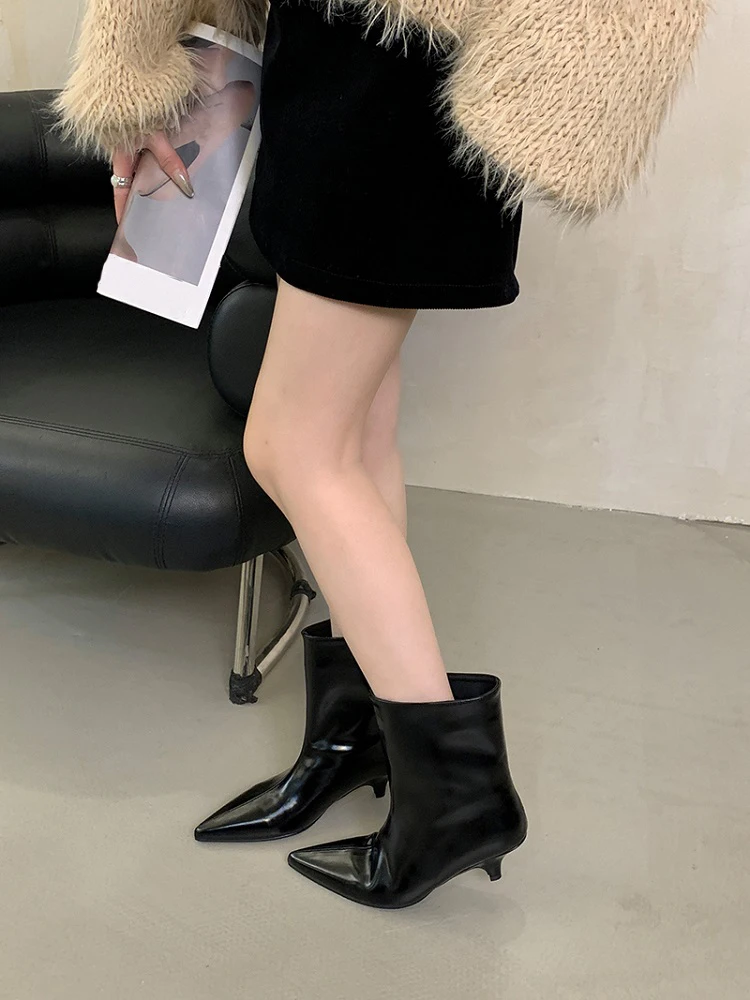 Eilyken 2025 Winter New Fashion Ankle Short Boots Women Pointed Toe Elegant Thin Low Heel Dress Ladies Pumps Shoes